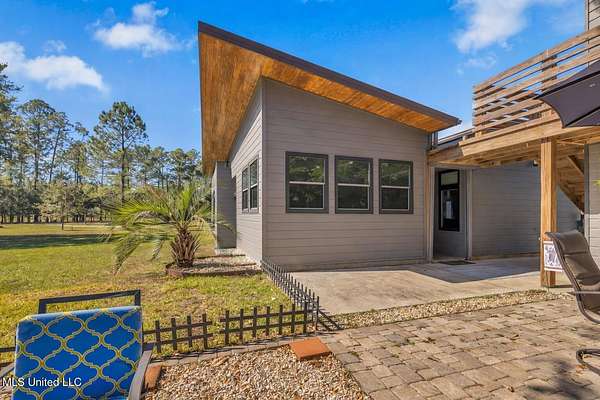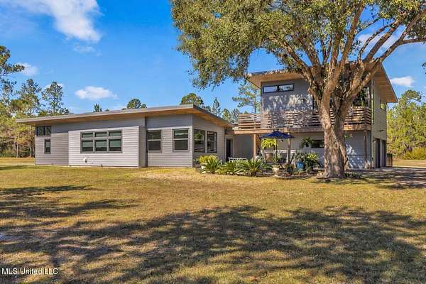 Looking for a 3-bedroom home? This one offers a great solution. The sellers are open to enclosing the screened lanai to create a third bedroom with a reasonable offer, giving buyers flexibility without having to plan a renovation on their own. AI renderings are included to show how the space could be finished, with walls and windows designed to match the home's existing exterior and architectural style. This option allows you to tailor the home to your needs-whether for an additional bedroom, home office, or guest space. Ask your agent about the conversion details and see the renderings during your showing. Custom Architectural Home with Breathtaking Design on 4.49 Acres Discover your private retreat just 7 miles from I-10! The main home offers 1,883 sq. ft. with a two-car garage (washer and dryer hookups included), plus a 556 sq. ft. carriage house above-complete with a full kitchen, bedroom and bath, ideal for guests, a VRBO rental, or investment opportunity. This stunning custom-built home masterfully blends modern craftsmanship with natural beauty-designed to bring the outdoors in. Featuring casement ventilation windows, 6-inch exterior walls with open-cell foam insulation, and Cypress tongue-and-groove wood ceilings throughout, every detail showcases thoughtful design and efficiency. Step inside to find elegant porcelain tile flooring, smooth, clear-coated custom cabinetry, and an impressive 4x8 kitchen island-the perfect centerpiece for cooking and entertaining. The open-concept layout flows seamlessly to a 12x12 screened lanai, offering peaceful views and a perfect space to unwind. Relax by the mezzo propane gas see-through fireplace or retreat to a separate living area for quiet comfort., 22K Generac generator, and 500-gallon underground propane tank ensure comfort and peace of mind year-round. Outside, enjoy 4.49 serene acres with approximately 3/4-acre contour pond and three versatile outbuildings, all with concrete floors: Building One: 18x61 covered motorhome site with 50-amp hookup, 20-ft floor drain, water, electric, and a 550-gallon septic tank. Building Two: 12x30 enclosed drive-through with front and rear roll-up doors. Building Three: 14x30 covered carport. This peaceful, one-of-a-kind property offers both luxury and functionality-perfect for nature lovers, entertainers, or anyone seeking tranquility with convenient access to the coast. Located just 30 minutes from Old Town Bay St. Louis and one hour from Downtown New Orleans. Find your Zen-schedule a private tour today!