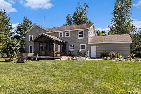 Great opportunity on this large colonial on a private and secluded 19.68 acres. The exterior of the home has great appeal with extensive landscaping, a covered front porch, and a two car side entrance garage with separate electrical service panel with 220 and heat. On the back of the home you will find a large screened in covered porch, cement patio with hot tub, and a fire pit. Currently the home is set up as a 5 bedroom utilizing a portion of the home (two private offices and additional workspace area) as a home office that can be closed off from the main home and has a private entrance from the exterior allowing for a distraction-free workspace. The home is very versatile, could be up to 7 bedrooms, if needed. There are hardwood floors in the large formal dining room and breakfast nook. Kitchen has plenty of cabinets and counter space. Main floor laundry has a walk-in pantry. Main floor also has a large living room with a stone gas fireplace and built-in book shelves. Upstairs features a large primary bedroom which includes an updated private bath with walk -in shower, beautiful views of the property, and lots of closet space. Second floor family room has a secret door/bookshelf which leads to a large playroom and additional bedrooms, adding a touch of whimsy and adventure. The overall layout of the home encourages togetherness, and also provides private spaces. This home showcases cutting-edge Energy Star rated efficiency that will save you money and provide a tranquil living experience. The 19.68 acres has a mix of woods and fields which were previously used for horses. Lots of deer, turkey, bunnies, and other animals call this place home. There is a permitted shooting range on the property that can be used by the new owners as they see fit.