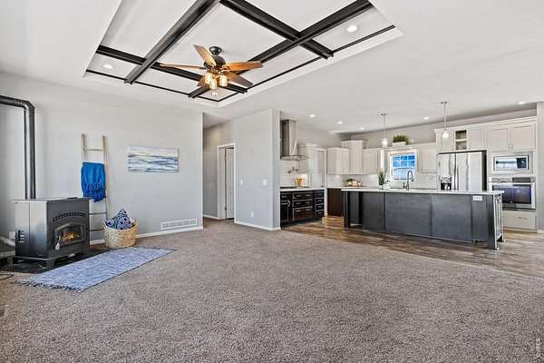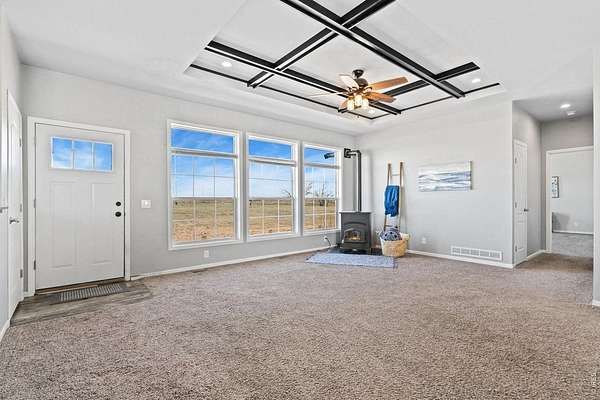 Are you craving wide-open spaces and a quieter way of life? This acreage offers the perfect setting for a hobby farm or anyone seeking privacy, freedom, and room to breathe-without the restrictions of covenants or an HOA. At the heart of the property sits a spacious, thoughtfully designed home featuring an open-concept layout ideal for both everyday living and entertaining. The expansive kitchen is a true centerpiece, complete with abundant cabinetry, generous counter space, a large center island, and an oversized pantry-perfect for stocking up and embracing a self-sufficient lifestyle. The inviting living area is anchored by an efficient pellet stove, creating a warm and welcoming atmosphere year-round. The primary suite is a private retreat, offering a luxurious bathroom with a soaking tub, walk-in shower, and a custom walk-in closet. An adjoining flex space provides the perfect spot for a home office, nursery, or additional storage. The main level also includes three generously sized guest bedrooms and a large laundry room designed with country living in mind. The full unfinished basement with 9-foot ceilings offers endless potential for future expansion. Property electrical system is equipped with a generator port, a high efficiency furnace, and two water heaters. The 1,840-square-foot metal framed barn with three large stall openings is ready to accommodate livestock, equipment, or your next agricultural venture. With over 42 acres (pending final survey) and a full use well for livestock and landscaping, you'll have ample space to create the lifestyle you've been dreaming of-whether that includes animals, gardens, or simply enjoying the peace and quiet of the surrounding landscape. Seller is currently in the process of adjusting parcel boundaries. Final legal description to be provided by survey. The property sustained wind damage in the most recent wind storm and will receive a new roof and barn siding repairs prior to closing.