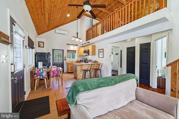 "Deer Crossing" Successful AIRBNB - This inviting home offers an openconcept design that blends warmth and functionality throughout. The main level features two comfortable bedrooms, a full bathroom, and a bright kitchen that opens to the living area, where a wood stove with a newer exterior stove pipe creates a cozy focal point. Upstairs, a spacious loft showcases beautiful woodplank ceilings with exposed beams and includes its own half bath. The loft can serve as an additional bedroom, a second living room, or a flexible space to suit your needs. Natural light fills the interior, and mainfloor laundry adds everyday convenience. Set on 3 private acres, the property provides generous outdoor living and recreation space. A front porch and connecting side deck offer ideal areas for relaxing or entertaining, while the large firepit with seating creates a perfect gathering spot. There is ample parking, a covered woodstorage structure to keep firewood dry, and an additional shed for storage. The home is being sold furnished and is already a successful Airbnb. A peaceful cabin in the woods and Bryce Resort is 8 minutes away and offers the following: small airport, library, dog park, indoor pool, outdoor pool, lazy river, pickleball, tennis, playground, golf, mini golf, lake, mountain biking, skiing, snowboarding, ice-skating rink, and restaurants. 1.5 hours from NoVA. There is a farmers' market on Wednesdays during the summer. Call now for an appointment.