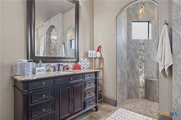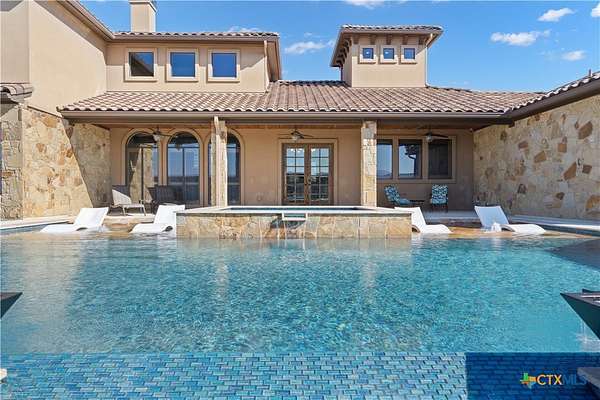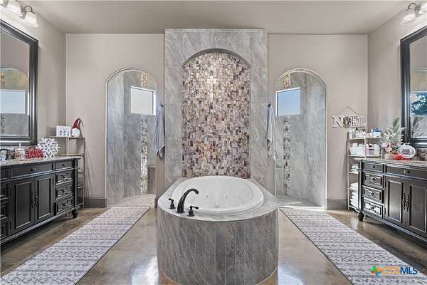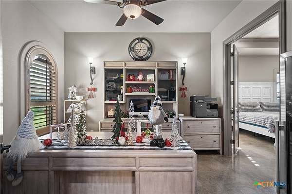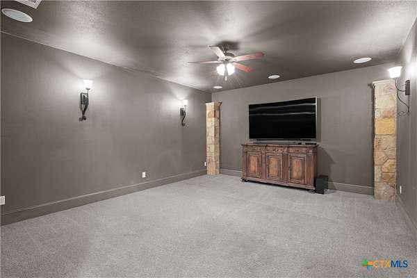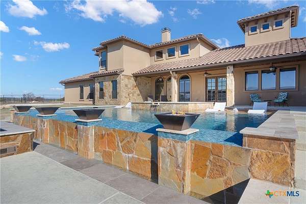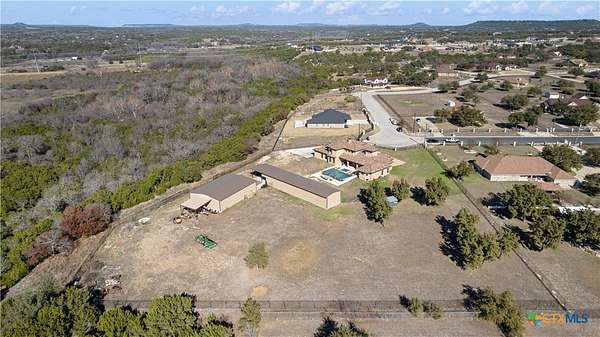 Set on 4.75 acres with private gated access, this 5-bedroom, 4-full-bath, and 2-half-bath estate has everything you could want and more. The spacious master suite is your personal retreat, with a cozy sitting area (or office space), a garden soaking tub, a walk-through shower, separate vanities, and his-and-her walk-in closets. Two guest rooms have private ensuite baths, while two others share a Jack-and-Jill bathroom-perfect for hosting family and friends. The heart of the home is a chef's dream kitchen, featuring ample counter space, a gas range, and everything you need to whip up meals for intimate dinners or festive gatherings. Two living areas, a theater room, a dedicated office, and a whole-house in-wall speaker system (controlled by an HTD multi-room amplifier with Bluetooth) round out the interior. Now, let's talk about your backyard oasis! This infinity-edge pool is a showstopper, with double beach entrances, an oversized hot tub that stays cozy even in winter, bubblers, color-changing lights, and four fire bowls with cascading waterfalls. Enjoy stunning Texas sunsets from the poolside patio, or use the nearly completed 118x21 ft. pavilion, already plumbed, wired, and Wi-Fi ready-perfect for a future gym, pool house, or entertainment space. But wait, there's more! The property includes a 2400 sq. ft. workshop with electricity, a two-story enclosed storage area, and a 20x25 ft. awning. Plus, the partially fenced backyard is ideal for outdoor activities (or chickens-yes, they can stay!). This home is ready to make your New Year's dreams come true. With an extra-wide driveway and endless possibilities, this estate is more than just a house-it's a lifestyle. Don't wait-schedule your tour today and start 2025 in your forever home! Check out the full 360 tour by clicking the icon above