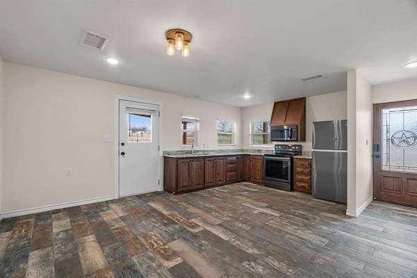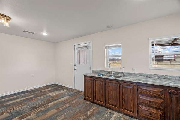 Integrated into the barn is a 701 sq ft living area built in 2018, with plenty of room to build a larger main residence. The existing barndominium makes an ideal guest house, caretaker's quarters, or multigenerational living space.