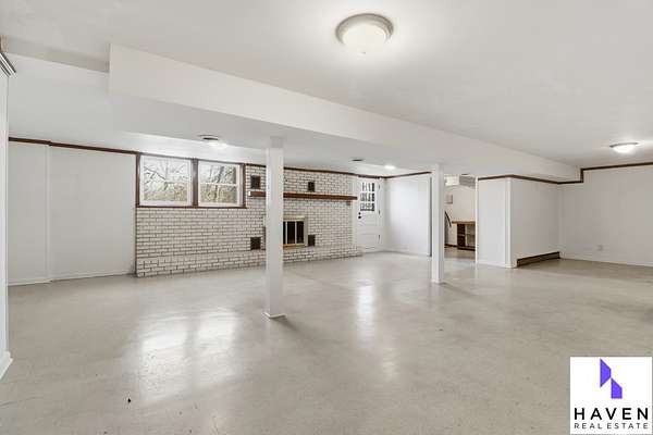 Interior features include a finished basement, two fireplaces, resurfaced hardwood floors, recent new HVAC, newer roof, updated windows, and a security system. The garage has been freshly painted, and recent remodeling throughout - move-in-ready..