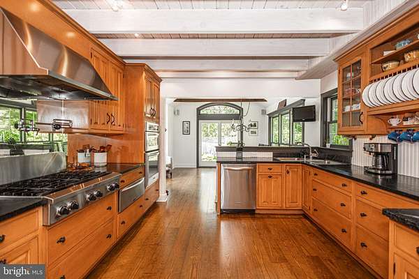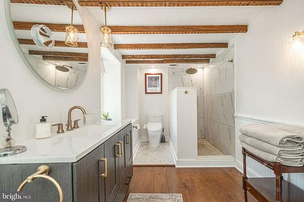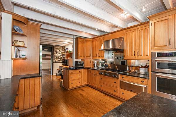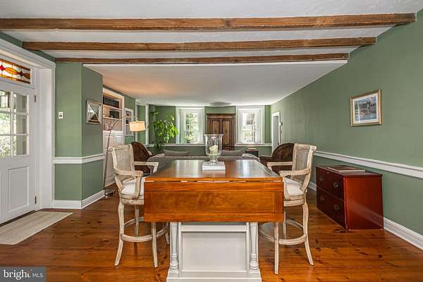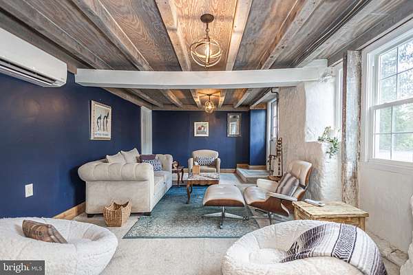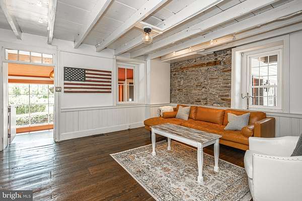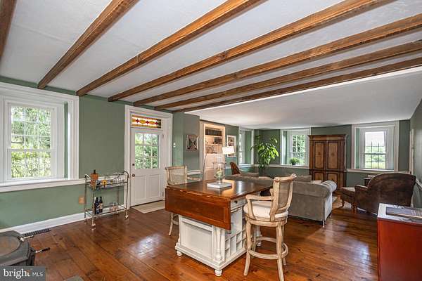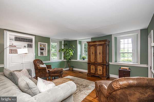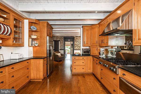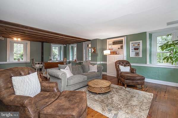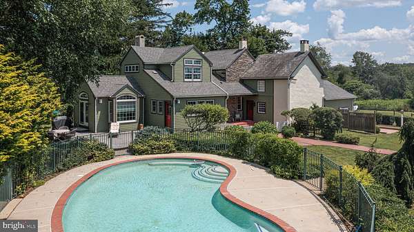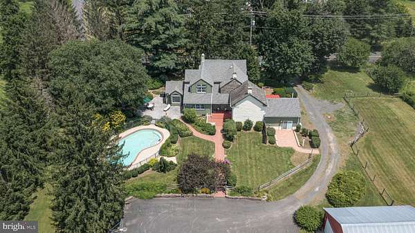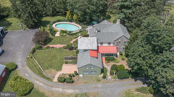 Welcome to Maplewood Farm, an expansive stone farmhouse dating back to 1792, thoughtfully restored and situated on over 5 serene acres in Pipersville, PA. The main 5 bed residence features formal living and dining rooms with charming built-ins, open rafter ceilings, cozy large gathering room, with wood burning stove, enclosed sun porch, renovated kitchen with soapstone counters, upgraded appliances, generous custom cabinetry including homework nook, and original wide-plank pine flooring, Vaulted breakfast room with views of the pool, patio, and grounds, Spacious mud/laundry room with built-ins and farmhouse sink, Master suite with sitting room , walk-in closet and updated bath. In addition to the 2 additional bedrooms on the second floor, there is as an added bonus: a 1,600 sq ft apartment with 2 bedrooms and 2.5 bathrooms-easily incorporated into the main residence for additional living space for family members. Outside you will enjoy private patios, fenced pastures, a pool and long-range views, 2-story Bank Barn with water/electric-ideal for livestock; additional barn perfect for Gym, storage, workshop, or home business, a smaller barn for your chickens.