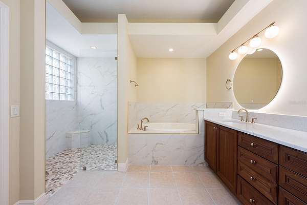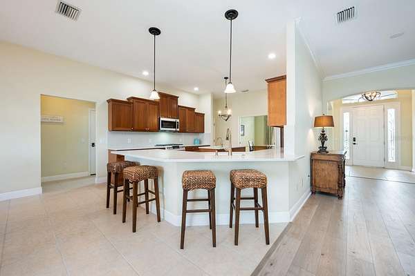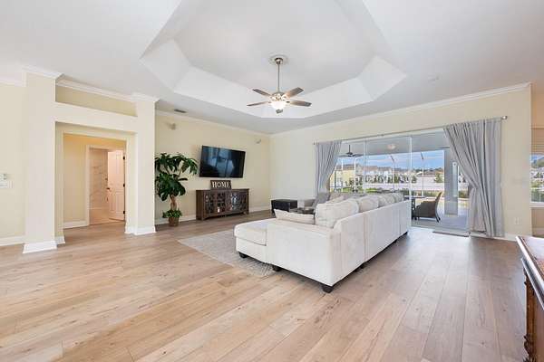 One or more photo(s) has been virtually staged. Ask about a lender provided RATE BUY-DOWN CREDIT on this home! *RARE OPPORTUNITY FOR 2+ ACRES ADJACENT TO THE VILLAGES!* Set on two spacious lots totaling 2.28 ACRES, this one-of-a-kind ESTATE HOME in Wildwood delivers the rare combination of luxury, land, and freedom - NO HOA, golf-cart friendly, and just 2.2 miles from Brownwood Paddock Square in The Villages! Formerly an executive model home, the property has been fully REMODELED and thoughtfully UPGRADED, offering a MOVE-IN READY lifestyle with room to EXPAND, build, or relax, unwind and enjoy the space around you. *MAJOR UPDATES INCLUDE: a BRAND NEW ROOF (2025), 2 NEW TRANE A/C SYSTEMS (2025), a NEW WATER HEATER (2025), FRESH INTERIOR & EXTERIOR PAINT, UPDATED LANDSCAPING, and NEW FENCING on the back and sides for added privacy. Every big-ticket item has already been handled - so you can focus on living! Curb appeal is immediate, with a side-facing OVERSIZED 2-CAR + GOLF CART garage, manicured landscaping, and the presence that only a former model home can offer. Inside, over 3,400 square feet of curated living space unfolds with high-end finishes, CERAMIC TILE and LUXURY VINYL PLANK FLOORING throughout, flexible formal areas, and an open, inviting family room that flows seamlessly into a light-filled breakfast nook and a timeless kitchen with a modern edge - perfect for any style! The home chef's dream kitchen features sleek CULTURED GRANITE COUNTERTOPS, an ISLAND with prep sink, and NEW GE CAFE APPLIANCES, ideally suited for both everyday living and entertaining with ease. The sprawling OWNER' SUITE is a true retreat, privately tucked into its own wing of the home. French doors open directly to the lanai - sip your morning coffee - while the suite itself boasts a massive CUSTOM CLOSET with built-in desk and a spa-inspired en-suite bath with dual sinks, lighted mirrors, soaking tub, and an oversized walk-in shower. Guest bedrooms are located on the opposite side of the home with a beautifully updated full bath between them, delivering privacy and comfort for everyone. Outdoor living truly shines here - an expansive COVERED LANAI with a BRAND NEW OUTDOOR KITCHEN - complete with stone finishes, stainless hood, gas range, sink, and built-in beverage refrigerator - overlooks the HEATED POOL and seemingly endless backyard. A convenient FULL POOL BATH opens directly to the lanai, making entertaining effortless with the opportunity to add a door and create an en-suite to the neighboring bedroom. Mature trees create a tranquil, private setting that feels worlds away, yet keeps you minutes from a variety of shopping, dining, and entertainment. The second attached lot is fully buildable, offering endless possibilities - add a detached garage, workshop, guest home, or create a multi-generational setup. With no HOA restrictions, space for toys, hobbies, or future expansion, and proximity to The Villages, this property stands in a category all its own. This is not just a home, it's a lifestyle upgrade! Call today to schedule your tour and let us say WELCOME HOME! *Seller may consider buyer concessions if made in an offer***
