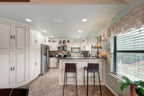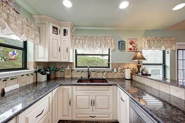 Nestled on a serene 3.377-acre wooded lot in the heart of Canyon Lake, this unique 1.5-story home offers 3 spacious bedrooms, 2 full bathrooms, and a cozy upstairs loft perfect for a home office, game room, or additional sleeping space. The open concept living area is highlighted by soaring ceilings, abundant natural light, and a charming stone fireplace that sets the tone for rustic elegance. The kitchen features custom cabinetry, granite countertops, and stainless-steel appliances, flowing seamlessly into a bright dining space with picturesque views of the surrounding landscape. Step outside onto the expansive wraparound deck and enjoy peaceful evenings under the Texas stars or morning coffee surrounded by mature oak trees. This property also includes a detached storage building with its own deck--ideal for a guest cabin, studio, home office, creative retreat, or future short-term rental potential .Located just minutes from the Guadalupe River for tubing, kayaking, and fishing, and conveniently close to Whitewater Amphitheater--perfect for enjoying seasonal live music and entertainment nearby. This private and tranquil setting provides the perfect blend of nature and convenience. Whether you're looking for a full-time residence, weekend getaway, or investment opportunity--this Hill Country gem checks all the boxes.