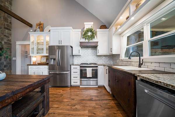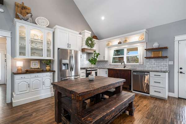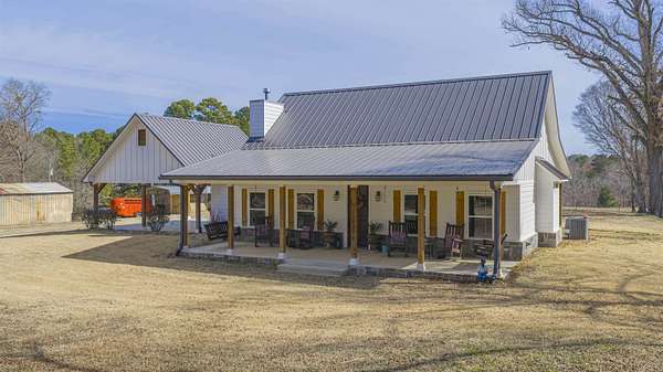 Experience the appeal of Texas country living on 10+ fenced acres with this thoughtfully built farmhouse constructed in 2020, offering 1,335 square feet of comfortable living space and versatile land suited for agricultural, equestrian, or recreational use. The home features 2 bedrooms (one with a loft) and 2 bathrooms, with an inviting open-concept layout that maximizes space and natural flow. The living room is anchored by a dramatic floor-to-vaulted-ceiling stone fireplace, creating a striking centerpiece and cozy gathering area. Outdoors, the covered back patio is designed for year-round enjoyment with a wood-burning fireplace and plenty of room for entertaining, relaxing, or taking in the surrounding acreage and rural views. The fenced pastureland is ready for horses or livestock, while the metal shop provides abundant storage, workspace, and a flexible enclosed area that can serve a variety of uses such as an office, hobby room, or guest space (not included in main home square footage). A separate covered carport offers convenient storage for hay, equipment, trailers, or additional vehicles, along with ample parking space across the property. Whether you're seeking a Texas farmhouse, horse property, small ranch, or country homestead, this property offers the land, improvements, and modern construction to support a wide range of uses.