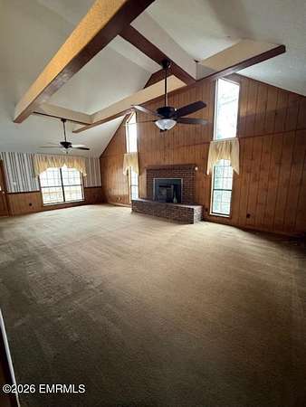 Est $1,312/moInterior photos will come, right now house is cluttered with pre-moving preparation. Agents must see private remarks. This is a rare find: a 3/2.5 home on over 6 acres bordering a lake with natural woods surrounding and a location in a private small community, all in Clarkdale school district. No HOA dues. There is a deck overlooking the lake. The great room has a vaulted ceiling and a fireplace with wood heater insert. This home has a metal roof and vinyl siding for low maintenance.