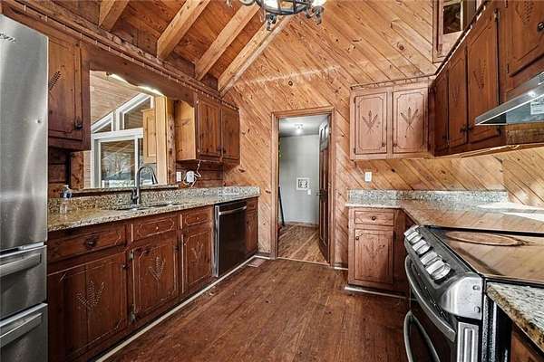 Luxury Retreat Meets Modern Homestead | Private 3-Acre Estate with Pond Welcome to your private escape - 5 bedrooms, 3 full baths where the dream of space, land and peaceful living finally meets convenience. Tucked behind a gated entrance (NO HOA) and surrounded by nearly 3 acres of rolling landscape, this one-of-a-kind log home in Powder Springs offers the rare combination of seclusion, natural beauty and proximity to everything metro Atlanta has to offer. Whether you've imagined growing your own food, raising animals or simply enjoying wide-open views and quiet mornings, this property delivers the lifestyle you've been searching for. From the moment you arrive, the setting sets the tone. A winding drive leads to this true log retreat, where expansive porches, soaring ceilings and warm wood finishes create an atmosphere that feels more like a mountain lodge than a home just minutes from shopping, dining, and major commuter routes. Inside, the dramatic great room features vaulted beamed ceilings, abundant natural light, and a cozy wood-burning stove-the perfect gathering space after a day outdoors. The open kitchen and dining areas flow seamlessly, making entertaining effortless and everyday living comfortable. The home's flexible layout offers space for multi-generational living, guests or INCOME POTENTIAL. The finished terrace level includes its own kitchenette, living area, bedrooms and private entry. Ideal for an in-law suite, long-term guests or creative work-from-home options. Step outside and the true magic begins. Enjoy your morning coffee overlooking the pond, spend afternoons gardening or unwind at sunset with panoramic views across your land. The updated barn and fenced areas provide opportunities for hobby farming, animals, workshops, or storage for your outdoor equipment, RV and recreational toys. This property is designed for those who value: - Privacy and space - Connection to nature - The freedom of no HOA - The flexibility to live, work and create - A peaceful retreat without sacrificing convenience Located in Cobb County, just minutes from the Silver Comet Trail, parks, and everyday essentials-and within an easy drive to Marietta, Smyrna and Atlanta, this is a lifestyle rarely available at this price point and location. If you've been waiting for the right opportunity to create your own retreat, homestead or private sanctuary, THIS IS THE ONE. Schedule your private tour today and experience the possibilities this exceptional property offers.