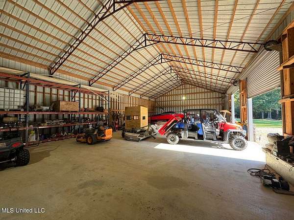 ATVs, tractors, and gear. It's a dream setup for those seeking a Mississippi hunting retreat with shop space, offering all the storage and functionality needed to manage the property or pursue hobbies year-round.