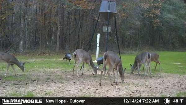 Brushy Creek 133 features five established food plots, creating a haven for deer and turkey. The combination of hardwoods, creek bottoms, and diverse habitat makes this a secluded Mississippi hunting property that consistently attracts wildlife.