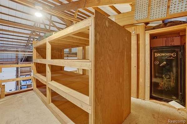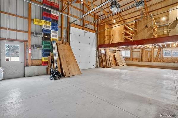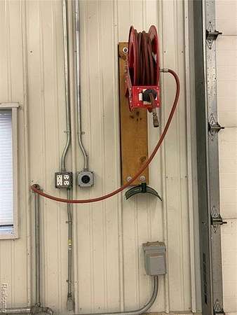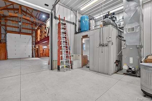 Next is the amazing Pole barn. This is every person's dream Pole Barn. Please reference all the captions under the photos in the listing for all the details. The Electrical panel has 200 AMP Service with 220V and 110V service. There are Concrete Anchors in the floor where a Asymetric Vehicle Lift can be installed. Overheard Door Brand Industrial Roll Up doors throughout. Oil Fueled Heat and A/C in the North Half of the Barn. Full bathroom with Shower. Loft above with tons of storage. Removable Railings for Forklift loading of the loft. Overheard Gantry Crain with Industrial Shelving. Full Drive Through Capabilities. 80 gallon Ingersoll Rand Air Compressor that hardwired with 8 wall air supply connections. 3 Hose Reels and 2 Condensation Drains. HOT & COLD Spighots on the exterior of the Pole Barn. 50 gallon Hot Water Heater. Moveable Workbench (casters) with remote air and electrical hookups. Exterior Lights throughout on Timers. Transfer Box on Electrical Panel has generator hookup. BATVAI