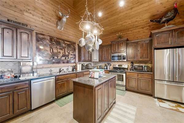 434 +/- ACRES IN DRUMRIGHT W/ CUSTOM LODGE, SECOND HOME, 9 PONDS, 3-ACRE LAKE & PRIVATE SHOOTING RANGE - 45 MILES FROM TULSA, 60 MILES FROM OKC! A premier Oklahoma estate offering luxury, privacy, and versatility. Located 2 miles from HWY 16 and 2.5 miles from HWY 33, the property sits perfectly between major metros with access to I-44, I-40, I-35, and HWY 75. Drumright (3 miles), Cushing (11 miles), Stillwater (30 miles), Tulsa (45 miles), and Oklahoma City (60 miles) are all within reach, making it ideal for a high-end ranch, corporate retreat, private getaway, or legacy investment. The 3,600 sq. ft. (CH) custom lodge features vaulted ceilings, a stone fireplace, and custom built-ins. The gourmet kitchen includes stainless appliances, granite countertops, a walk-in pantry, and ceramic wood-grain tile. The master suite offers its own fireplace and multiple FamilySafe shelter rooms, and a Generac generator provides dependable backup power. The remodeled 2,371 sq. ft. second home with three bedrooms and three bathrooms is ideal for guests, staff, or extended family and includes a new well, furnace, water heater, and softener system. Outdoor amenities include nine stocked ponds, a 3-acre lake with dock, fishing pavilion, and fire pit, plus elevated blinds, feeders, and an archery setup. Wildlife is abundant with strong deer and turkey populations. A 100-yard private shooting range offers convenient practice, and the cavern rumored to have ties to Belle Starr adds character and history. A 40'x60' insulated shop, 20'x30' lean-to, and steel shelter provide ample storage for equipment, vehicles, UTVs, or event staging. The infrastructure supports everything from luxury ranch living to executive retreats, client entertainment, and strategic gatherings. Opportunities with this level of amenities, lodging, utilities, and development potential are rare. This estate is ready to deliver an exceptional lifestyle and long-term investment. Buyer's agents welcome!