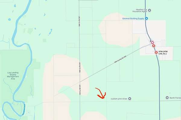 Starting from Bell, Florida: Head south on US-129 S/Main St toward Strickland Ave. Continue on US-129: Stay on US-129 S for approximately 4.5 miles. Turn right onto SW 50th Avenue: You will see SW 50th Avenue on your right. Turn right onto this road. Drive down SW 50th Avenue for approximately 0.5 miles. Lot 1 will be on your right-hand side.