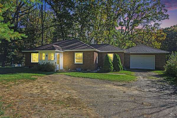 Charming Home on Three Wooded Lots! This inviting 2-bedroom, 1-bath home is perfectly situated on three beautiful wooded lots, offering both privacy and natural beauty. Step inside the spacious living room featuring a tray ceiling and a cozy woodburning fireplace with insert, perfect for relaxing on cool evenings. The full unfinished basement provides endless potential-finish it for additional living space, a recreation area, or extra storage. Convenient main floor laundry (with additional hookups in the basement) adds flexibility. The attached 2-car garage offers plenty of room for vehicles and storage. Enjoy the peaceful, wooded setting while still being close to town amenities-this property offers the best of both worlds!