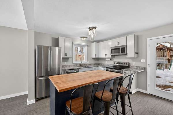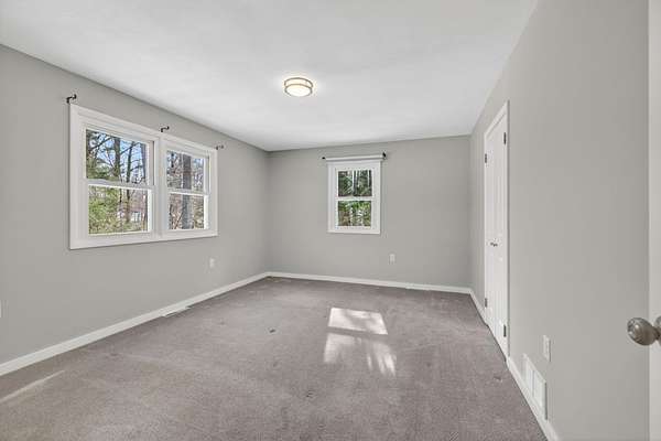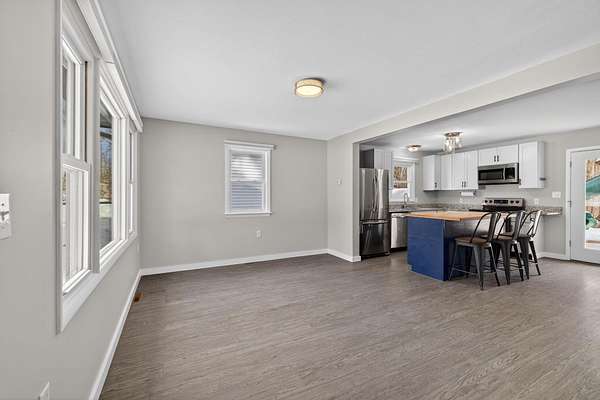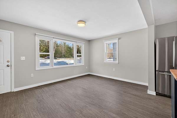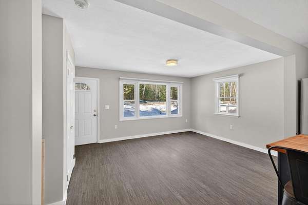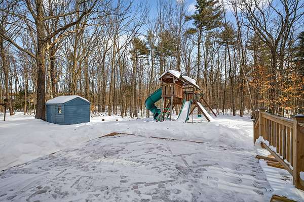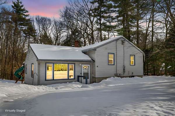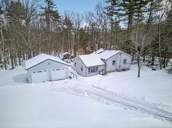 Don't miss this amazing opportunity to own a beautifully maintained home set on 2 picturesque private acres. This 3-bedroom 1 bath property offers over 1,740 square feet of flexible living space in a peaceful wooded setting perfect for those seeking privacy without sacrificing convenience. Step inside to a freshly painted interior and a bright open concept main level. The spacious kitchen features granite countertops stainless steel appliances ample cabinetry and a dining area that opens to a large rear deck ideal for entertaining or relaxing while overlooking nature. Both the deck and shed have been recently painted adding to the home's crisp well cared for appearance. The upper level offers three comfortable bedrooms with carpeted flooring and a full bath with modern finishes. Downstairs the finished lower level provides a heated family room laundry area utility closet and additional space for storage or a workshop with direct access to the backyard. Additional highlights include vinyl siding and windows a well maintained forced hot air furnace and central air conditioning. A detached two car garage built in 2016 offers generous space for vehicles equipment and recreational toys. Conveniently located just minutes from Route 106 only 20 minutes to Concord and within walking distance to the local sports fields this home delivers the perfect blend of privacy functionality and accessibility. Showings begin at the open house Saturday 2/21 from 12 to 2 PM and Sunday 2/22 from 11 to 1 PM. Don't miss your chance to make this move in ready property your own. Some photos virtually staged.