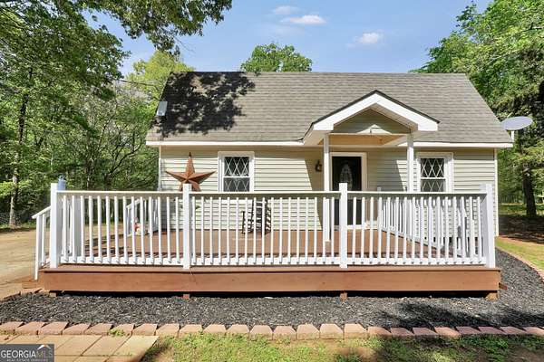 Tucked away on 4.89 peaceful acres in rural Jasper County, this charming Cape Cod-style home offers the perfect blend of cozy comfort, privacy, and country living. With 3 bedrooms and 2 bathrooms, the home welcomes you with a warm, cozy feel and recent upgrades throughout such as warm LVP floors and butcher block kitchen counters. You'll also find fresh paint throughout, brand new front and back decks- the back deck is covered so you can sit in the shade and enjoy your beautiful yard! The extra large Master bedroom is cozy yet so spacious with an ensuite bath featuring his & hers sinks. The additional bedroom upstairs features a very cool little office/play nook. Surrounded by nature and set well off the main road, you'll enjoy unmatched privacy and tranquil views in every direction. The property is ideal for animal lovers or those dreaming of a small homestead, featuring partially fenced acreage and a 2-stall barn ready for horses or other livestock. This is a rare opportunity to own a little slice of super private, homestead heaven in an excellent price point! Don't miss it!!