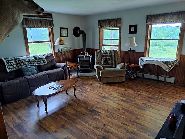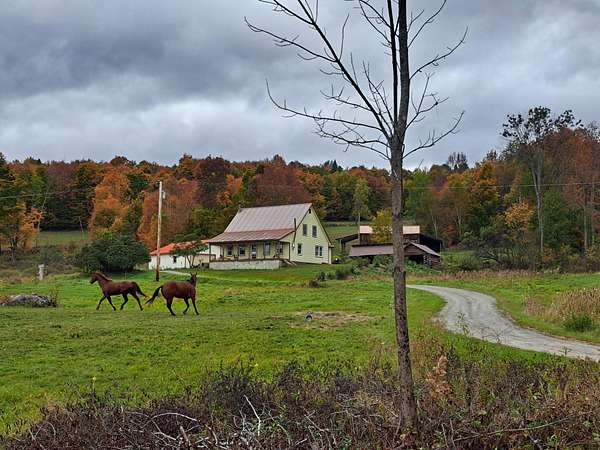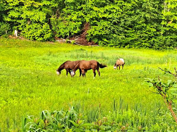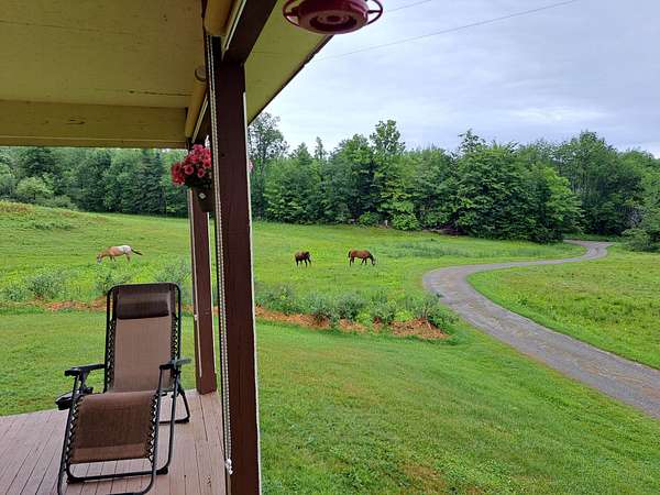 This property, located just outside of the hamlet of Baker's Mills in the Town of Johnsburg. It is 141 acres, including ~14 acres in pasture, with a portion of that pasture in a food plot for whitetail hunting. Horses are regularly turned out in these pastures to graze. There is a small pond (just shy of a quarter acre) not far from the house, which can be used for swimming, fishing, or simply entertaining.