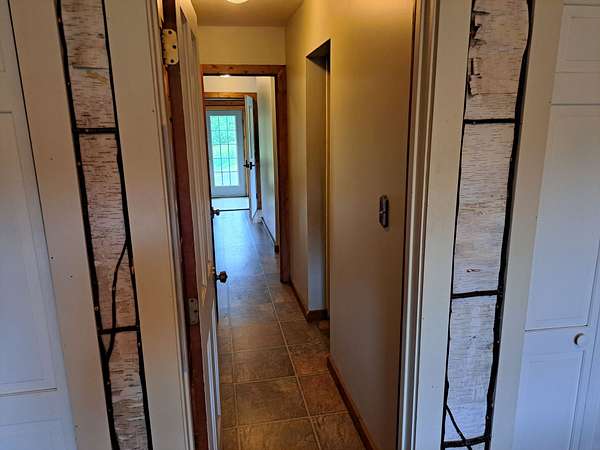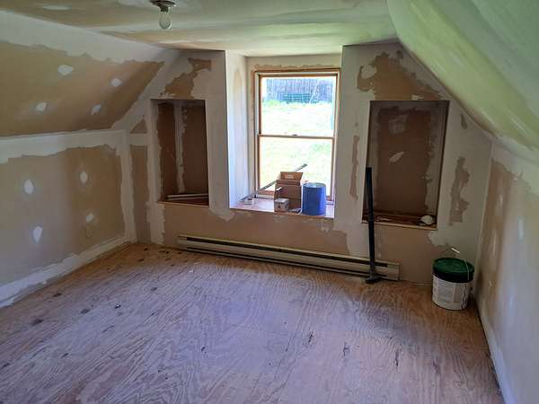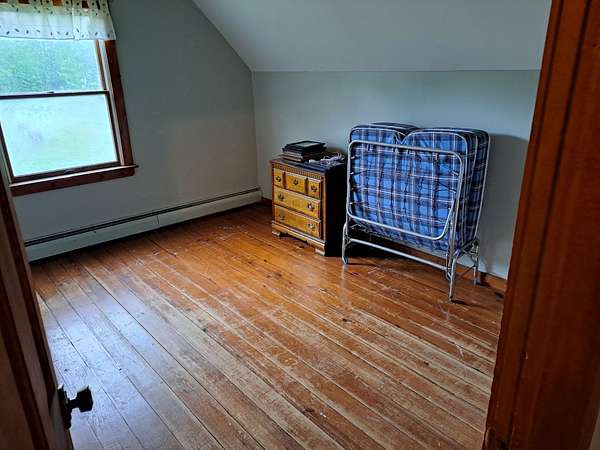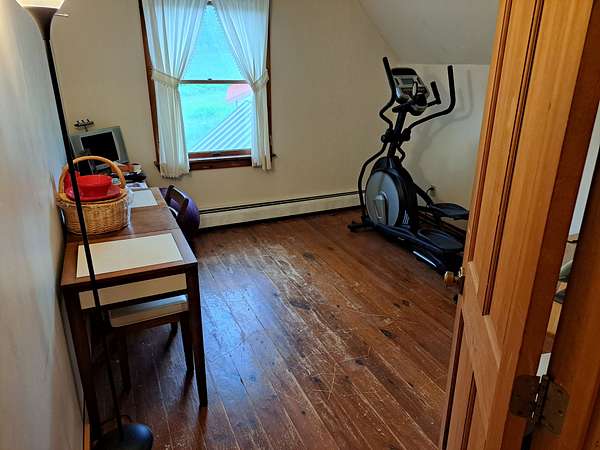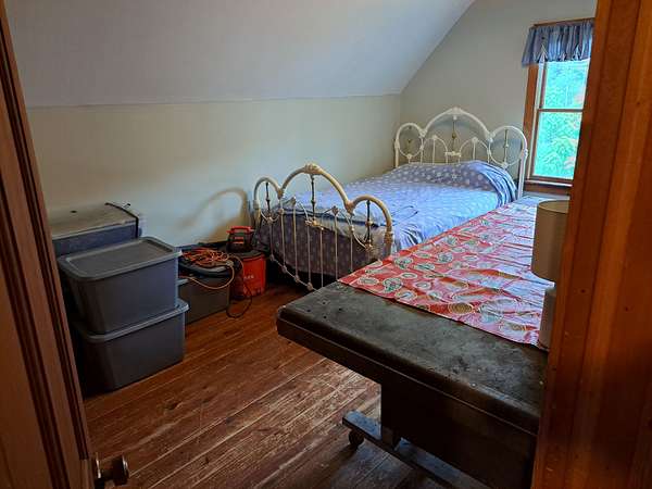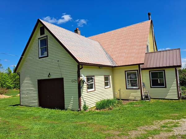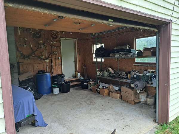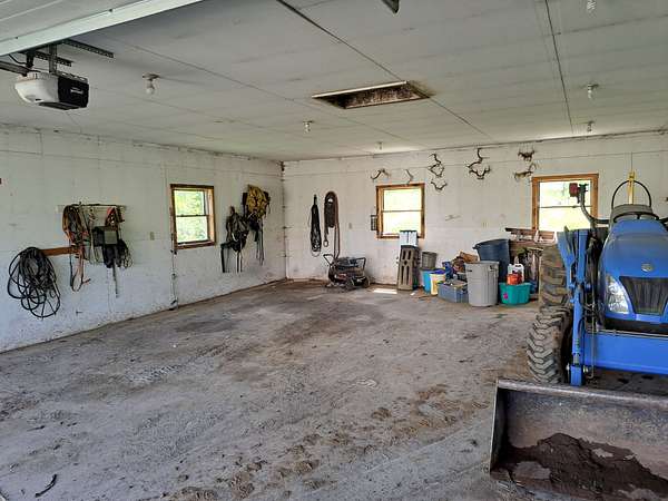 The Cape Cod style house was built in 1987 by the current owner. It is 2,300 sqft, with 4 bedrooms and 2 full baths, plus an additional unfinished bedroom. It has a modern kitchen and a dining room with a view, a full basement with a Bilco-style door for walk-out access. The house has a single-bay garage, which is better described as an attached wood and utility shed. In addition, there is a separate 2-bay garage that is heated and insulated, offering a year-round work space capable of housing all the equipment useful for such a property.