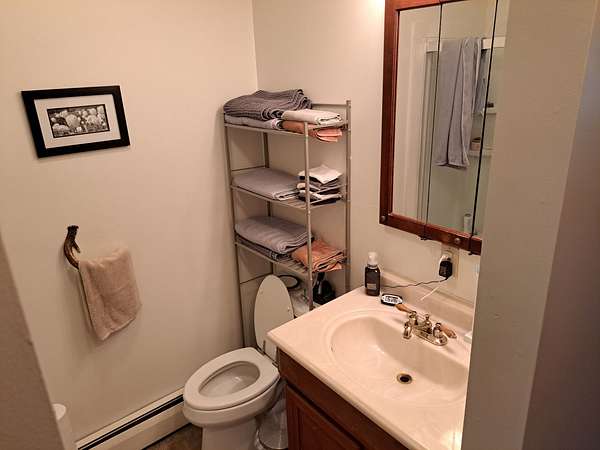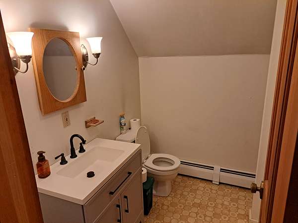 The home is heated by a hot water radiator system, powered by an outdoor wood boiler. In the colder months, the wood boiler also heats the domestic hot water; for the warmer months, there is an electric hot water heater as the outdoor wood boiler goes idle. The house can also be heated by fuel oil if desired.