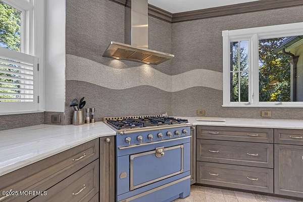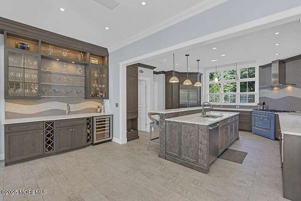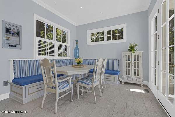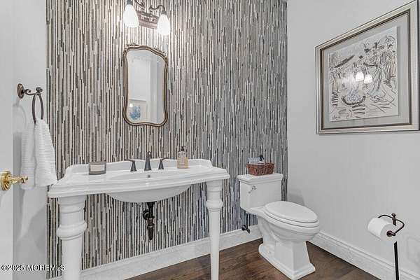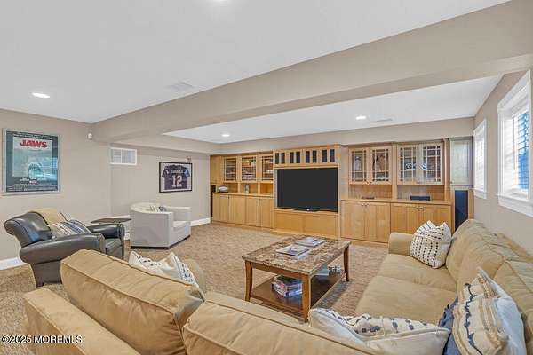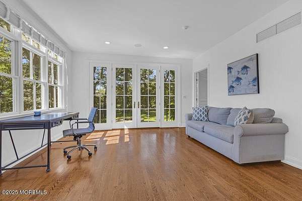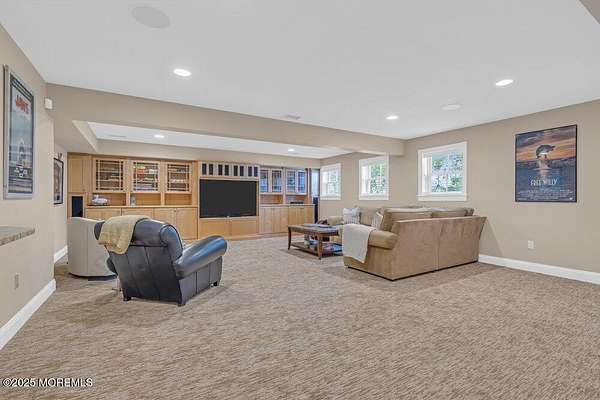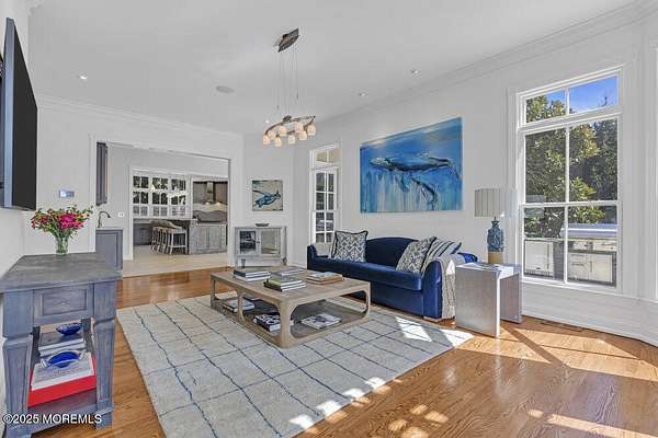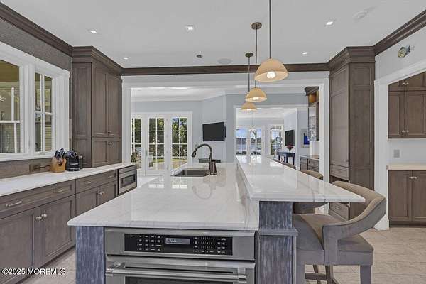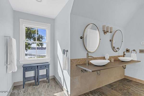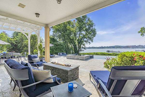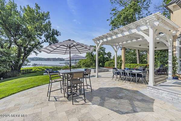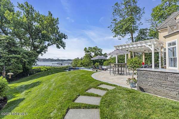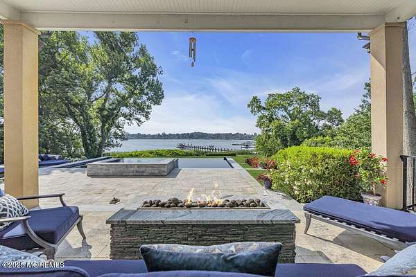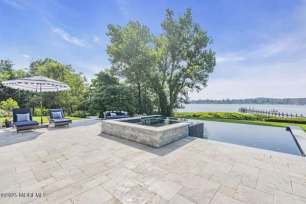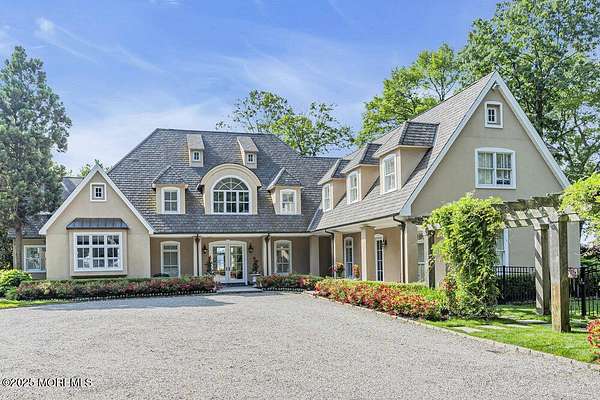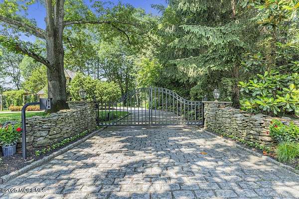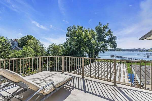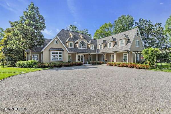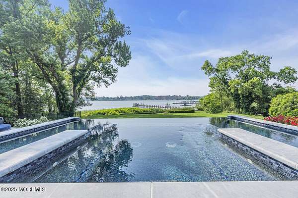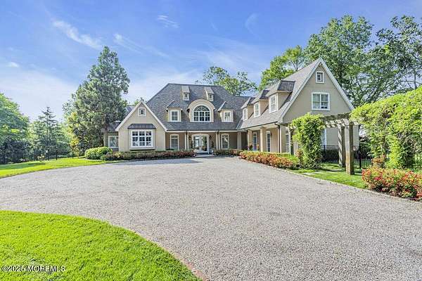At the end of one of Monmouth Cty's most sought-after streets, this gated Navesink Riverfront estate combines privacy, luxury, & natural beauty in one extraordinary offering. The home spans 6,507 sq. ft. plus a 2400 sq ft finished lower level w/ two guest ''spaces'', each with a full bath, & a gym above the 3 car garage that could convert to a caretaker's or family apartment. Designed for both grand entertaining & everyday comfort, the flexible floor plan includes a 1st floor in-law suite, a beautiful newer custom chef's kitchen a La Cornue range & high-end appliance, an open floorplan & 4 bedrooms upstairs, highlighted by a spacious primary suite with a balcony, fireplace & updated bath. Outdoors, the property feels like a private resort w/ a spectacular edgeless pool, spa, dock & boat lift, gas fire table and lush landscaping. Wildlife such as purple martins, osprey, and deer enhance the serene waterfront setting. The new stucco siding ensures the home is as fresh as it is timeless. A rare opportunity to own a true sanctuary on the water!