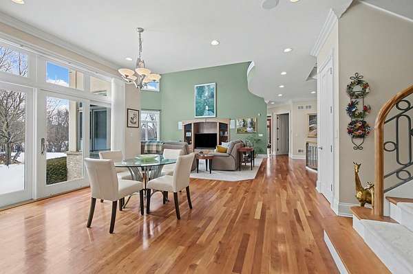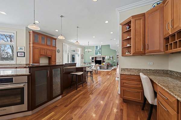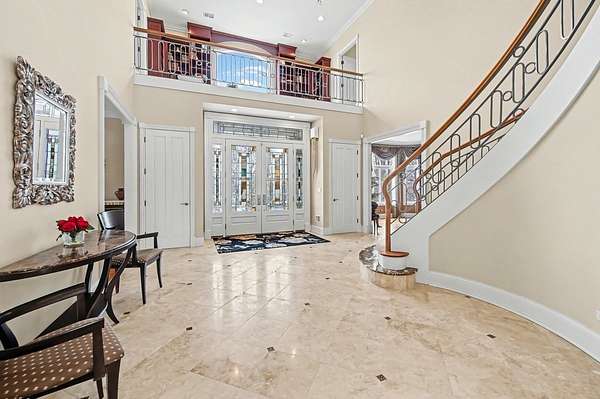 Discover resort-style living in this spectacular Barrington Hills estate, privately set on 5.5+ prime acres along prestigious Brinker Road. Behind the gated entrance, this architectural masterpiece offers over 11,000 square feet of refined living space across three levels, all served by dual staircases and an elevator. An outdoor sanctuary with manicured grounds, a scenic pond, and a stunning 50-foot pool with integral hot tub, this estate combines elegant architectural detail with every modern luxury. Step through the custom double doors into a grand two-story foyer with limestone floors and a sweeping curved staircase flanked by spacious living and dining rooms, perfect for elegant entertaining. The gourmet kitchen is a culinary dream, featuring dual-tone cherry cabinetry, Sub-Zero, Thermador and Bosch appliances, an expansive granite island, butler's and walk-in pantries. Flowing seamlessly to the breakfast room with access to the rear deck and the great room with soaring ceilings, limestone fireplace, and walls of windows overlooking the resort-like backyard. An inviting study with cherry wood built-ins and a wet bar, an elegant dining room with butler's pantry, and an airy sunroom with vaulted turret ceiling highlight the main level. Upstairs, two primary suites provide unparalleled comfort boasting radiant-heated spa baths and walk-in closets with custom organizers. The first suite features a sitting area with cozy fireplace while the second offers versatile bonus space perfect for guest, in-laws or a private retreat. Two additional en-suite bedrooms and a library bridge overlooking the dramatic foyer below complete this well-appointed space. The walkout lower level is an entertainer's dream, thoughtfully designed for relaxation and recreation alike with radiant heated floors for year-round comfort. Enjoy lively gatherings in the expansive recreation and game rooms, appetizers and drinks at the stylish kitchenette / wet bar, or unwind in the inviting family room with fireplace or in the home theater. A private fitness room, fifth bedroom, and full bath add comfort and convenience, while a luxurious spa suite with sauna and steam shower offers the ultimate retreat. Outdoors, enjoy multiple bluestone and brick patios, a built-in grill, firepit, pergola lounge, and landscape lighting that creates a magical ambiance. Additional exterior features include a fenced property with electronic gate access and 32-zone irrigation system lawn and planting areas. The attached, heated 4+ car garage includes an EV charger and custom storage. Recent upgrades include a DaVinci composite slate roof (2025), new gutters (2024), and updated mechanicals for ultimate peace of mind. With a location just minutes to town, train, shopping, and award winning D220 schools, this is a rare opportunity to own one of Barrington Hills most distinguished estates seamlessly blending craftsmanship, privacy, and luxury.