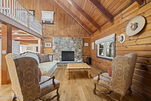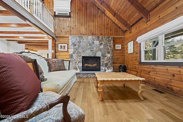Discover the perfect mix of charm, updates, and location! Nestled on 3 private acres, this custom log home welcomes you with a tree-lined drive and picture-perfect porch. Inside, enjoy a stunning first-floor primary suite with en suite bath and walk-in closet, plus 2 more bedrooms, 2 full baths, and a beautifully renovated kitchen. Major upgrades include new septic, whole-house generator, HVAC, windows, doors, and a 2018 roof-move-in ready peace of mind! A 4-car garage with full second floor offers endless potential for hobbies, storage, or a dream studio. Just minutes to Belmar Beach, GSP, and 195, with golf, hiking, fishing, marinas, and shopping nearby. A true storybook retreat with unbeatable convenience!