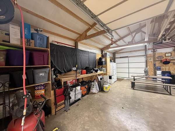 - Above Ground Pool, Covered Patio, Partially Fenced, Screened Porch, Shop