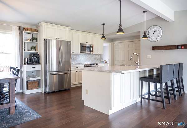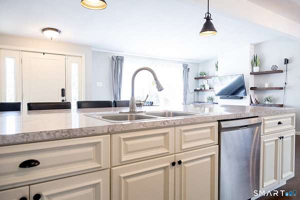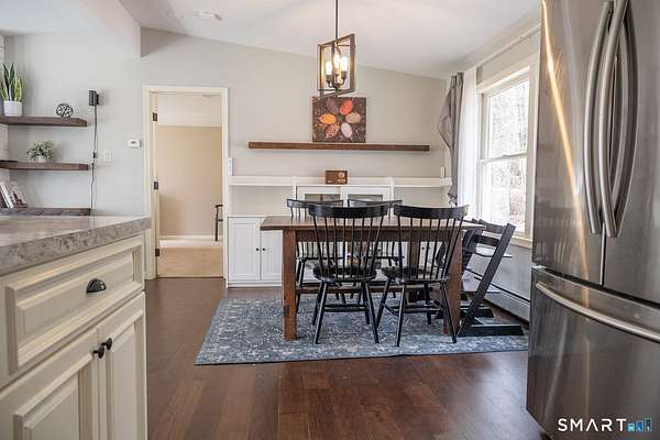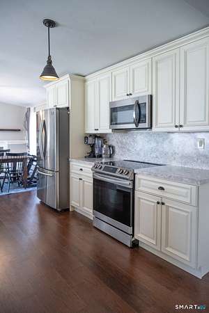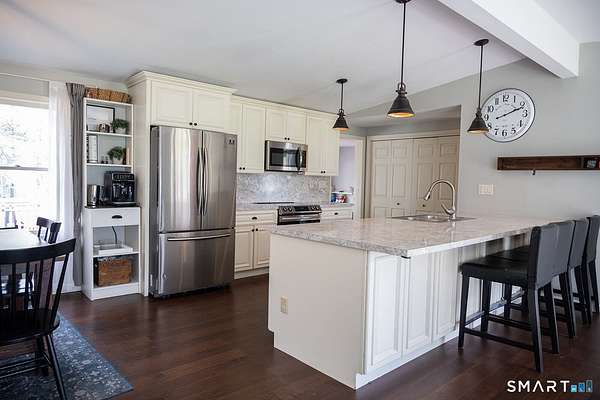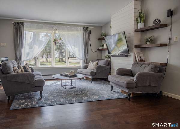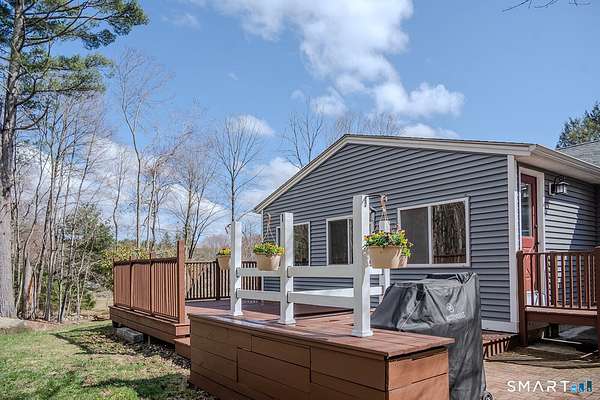 Welcome to this beautifully updated home offering a perfect blend of comfort, style, and functionality. Completely redone in 2018, this property features modern finishes, an open and inviting layout, and thoughtful updates throughout. The main living space flows seamlessly, filled with natural light and designed for everyday living and entertaining. A gorgeous finished room at the back of the home overlooks the deck and yard, creating the perfect space to relax or gather. The home includes a spacious primary suite complete with an attached bath and walk-in closet, providing a comfortable and private retreat. Downstairs, the basement has been enhanced with bright wall-to-wall panels, giving the space a more finished feel - ideal for additional living space, a home office, gym, or recreation area. Outside, the lot has been thoughtfully improved with many trees removed to create more usable yard space, while still maintaining mature trees for privacy and a peaceful, wooded feel. Major updates completed in 2018 include the roof, gutters, boiler, oil tank, flooring, septic tank, and fully remodeled kitchen and bathrooms - offering peace of mind for years to come. Set in a convenient location and offering both indoor comfort and outdoor potential, this home is ready for its next chapter. This home offers a true turn-key opportunity with thoughtful updates already completed for you.