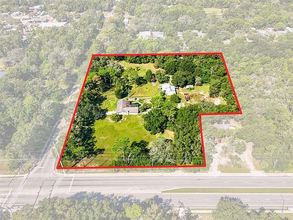 The property includes a barn with an apartment, multiple pole barns, and an older home that was given no value in determining the list price — meaning the value is in the land and its future possibilities. Located within 2 miles of Wolf Lake Elementary, Wolf Lake Middle, Rock Springs Elementary, and Apopka High School, it offers excellent convenience for families. With its corner exposure on two major roads and proximity to shopping, dining, and recreation, this acreage is a rare find for builders, investors, or anyone looking to create their dream property.