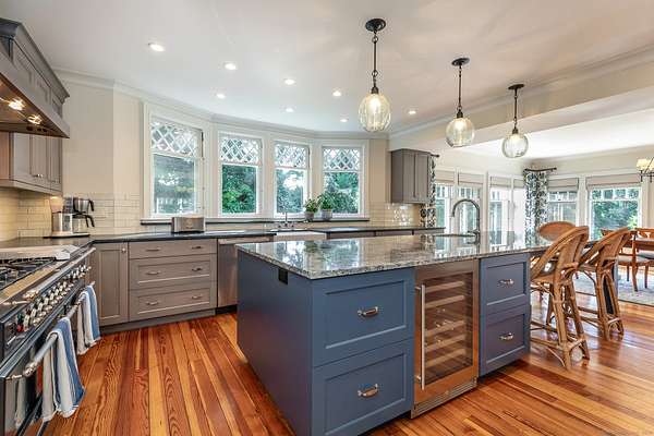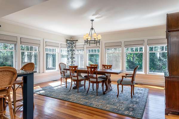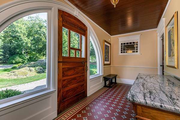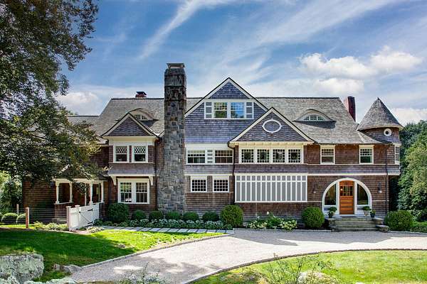 Built in 1885 as a Gilded Age summer retreat, Rock Gate is as well-known and celebrated in Washington as its architect: Ehrick Rossiter. Rossiter's generous rooms graced with restored carved butternut wood panels, walnut and fir floors, delicate turned spindles, alongside arched windows, porches, and turreted and gable roofs, define the Queen Anne shingle-style homes of the period. Updated and reconfigured for the 21st century, this magnificent home contains modern comforts without sacrificing historical significance and charm. Bathed in natural light, the kitchen invites cooking & conversation; a spacious mudroom with built-ins summons summer strolls; and a remodeled primary bath leads to a dressing room that suggests elegant ease. Reinvigoration of the interior also includes fresh paint, stylish wallpaper, and new carpeting. Ten fireplaces grace the 5-6 bedroom home that boasts 5 full baths, 1 powder room, a wine cave, and wide staircases. New boilers, hot water tanks, plumbing, lighting controls, chimney liners, a well pump and water treatment system, and new equipment for the heated gunite saltwater pool aid effortless living. In addition to a new 1-bay detached garage, a separate 3-bay garage with a large walk up loft awaits your vision. Understated landscaping compliments the outcropping of stones for which the house was named, and grounds are enhanced by stone pathways trimmed with greenery. A private rear terrace sits amid a nest of trees that embraces the property.