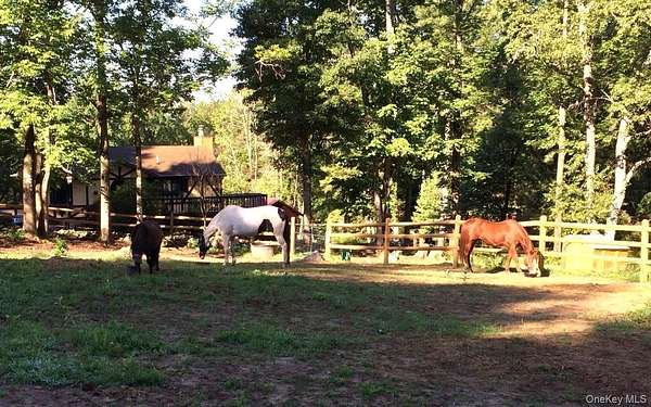 Private mini-farm on 3.46 acres featuring a well-maintained 3BR/3BA ranch with 1,724 total square feet including the finished basement. The main level offers a bright open-concept kitchen and living area with wood floors, abundant natural light, and a stone fireplace. The main bedroom includes an en-suite bath with a jacuzzi tub. Stainless steel appliances and washer/dryer are included. Enjoy outdoor living with both front and back decks in a peaceful, private setting. The finished basement adds valuable living and functional space with a full bathroom, laundry area, pellet stove, and dedicated workshop area. A 2-car garage provides parking, storage, and additional workshop space. This property is ideal for hobby farming and animals, with approximately 1 acre of enclosed pasture with horse shelter, a chicken coop with enclosed run, and a separate fenced area suitable for goats. The layout is also well-suited for dogs and offers plenty of room for gardening. Additional features include a shed, 12 x 24 garage/shed/animal shelter with built-in shelving and a loft for added storage and versatility. The property features apple trees, established perennial flower beds, and a stone-lined driveway. Conveniently located near Swinging Bridge Reservoir, Sackett Lake, Catskill Park (New York State-protected lands), the Forestburgh Playhouse, Catskill Resorts Casino, with nearby shopping, restaurants, and miles of hiking, fishing, and outdoor recreation. A rare opportunity to enjoy privacy, space, and functionality with modern comforts. Tax Map # 33.-1-26.3. Survey Available.