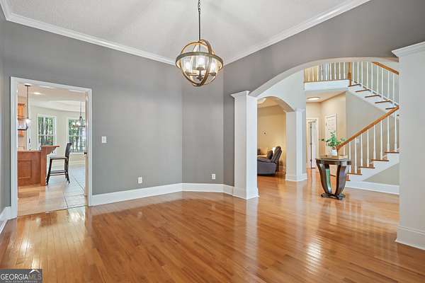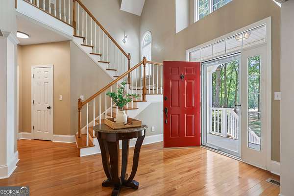 Welcome to 51 Hamilton Court in Griffin-nestled in the desirable Hutchinson Farms community in North Pike County, offering a fantastic location with both privacy and convenience. This beautiful 5-bedroom, 3-bath four-sided brick home sits on a wooded lot near the cul-de-sac, surrounded by mature landscaping that adds timeless charm and curb appeal. Step inside to a stunning two-story foyer that creates a grand first impression. The inviting living room features a cozy gas-burning fireplace, perfect for gathering and relaxing. The main living areas showcase hardwood and tile flooring, while the upstairs bedrooms offer comfortable carpeting. The primary bedroom is conveniently located on the main level and features a modern ensuite bathroom complete with a double vanity and a beautifully designed shower with a frameless glass door. Also on the main level, you'll find an additional bedroom and full bathroom, ideal for guests or flexible living arrangements. Enjoy peaceful outdoor living on the covered, screened back porch, perfect for entertaining or unwinding while overlooking the level yard. This property includes a double attached garage, plus a separate additional garage-ideal for extra storage, a workshop, or additional parking. Located in sought-after North Pike County and the established Hutchinson Farms neighborhood, this home combines classic style, functional space, and a truly great location.