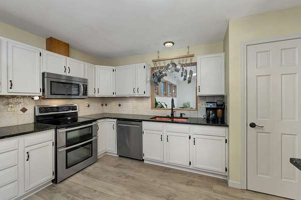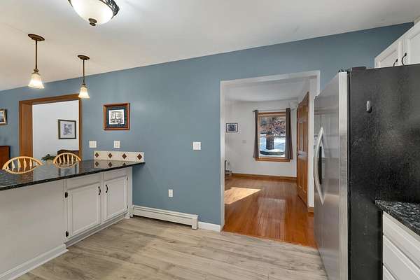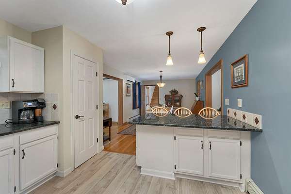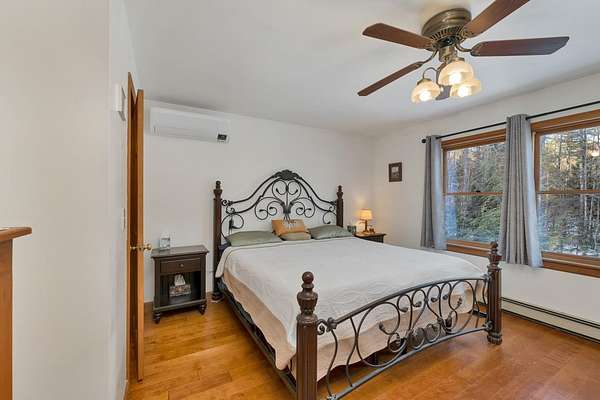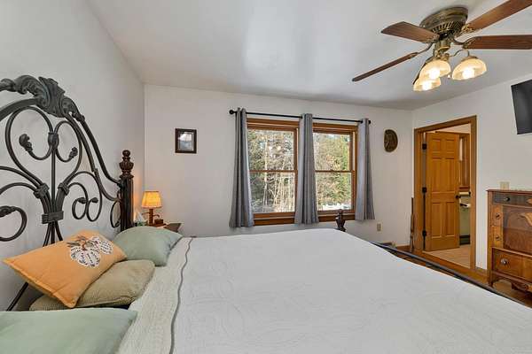 Set on 3 private acres in a beautifully established cul-de-sac neighborhood, this expansive 13-room, 4-bedroom, 3.5-bath one owner multilevel home is truly not a drive-by, offering four levels of versatile living space. The main level features a spacious mudroom entry that opens into an inviting kitchen and dining area, a formal living room, and a dramatic vaulted-ceiling great room filled with natural light and overlooking the multi-level deck and serene grounds. A private in-law suite off the entry and dining area provides exceptional flexibility for guests or multigenerational living, while the primary bedroom on the opposite side of the home includes a generous recently updated ensuite 3/4 bath for added comfort. A full hallway bath and two additional bedrooms round out this level. Energy efficiency shines with owned solar panels and eight mini-splits for customized heating and cooling--and significant SAVINGS. The finished lower level offers a craft/finishing room, game room, home theater with giant 115" wall media screen with projector for movie nights, gaming or vacation picture slideshow, stylish bar area, and a spacious workshop ideal for hobbies, projects, or storage. A bonus is an additional level with sitting area, a sewing room/guest room and utility room. A two car garage with air compressor to top off the tires rounds out this welcoming home! Thoughtfully designed and rich with adaptable spaces, this home blends comfort and standout amenities in a picturesque neighborhood setting, all just under 15 minutes to Keene. FIRST SHOWINGS AT OPEN HOUSE ON SUNDAY 1/11 from 1-3pm. *Open House on Saturday 1/10 cancelled.