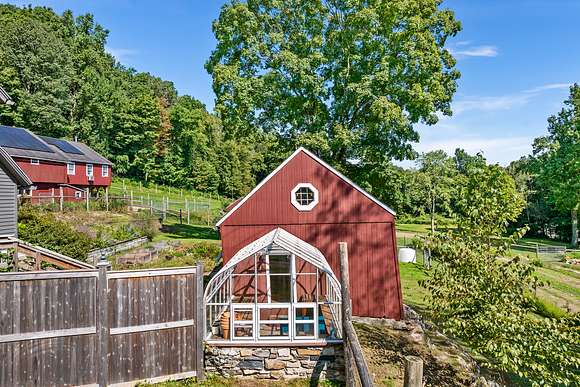 Are you looking for a modern day homestead, a horse farm or a rare opportunity to own a turnkey, operational organic farm in Fairfield County. In addition to rolling hills, bucolic pasture and woodlands, this scenic property boasts an orchard with 70+ varieties of fruit trees, flower gardens, and a large income producing herb and vegetable garden, all organically grown. The large barn provides ample space for horses and livestock with a 6 stall stable, in addition to open areas for events, storage and a workshop. The barn also features a newly renovated 1 bed, 1bath apartment with amazing views of the property. There is new cedar post fencing and gates throughout including 4 paddocks, a riding ring, orchard and garden fencing, and privacy fencing around the house completed with perimeter fencing. There are three wells on the property, including 800 gallon back-up in tanks, providing abundant water for the house, irrigation and livestock. There is a new four season production greenhouse with heating, electricity and irrigation. Other new additions include frost free hydrants throughout the paddocks and gardens, a mobile chicken coop, and a 19 kilowatt solar system with 10 kilowatt Tesla battery back-ups. There is also a whole house, propane fired generator. The stand alone studio/office is equipped with heating and cooling for year-round use, features new windows and an attached greenhouse with heat and electricity. The farmhouse has been beautifully renovated with a new kitchen, bathrooms, mudroom and office.