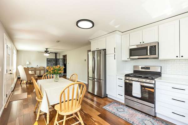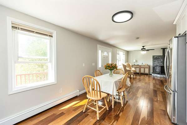 Tucked away at the end of a quiet, dead-end road, this beautifully remodeled 4-bedroom, 2-bath home offers the perfect combination of privacy, nature, and future potential. Set on 4.4 scenic acres with frontage on two dead-end roads, the property may offer subdivision possibilities (buyer due diligence), making it as much an investment opportunity as it is a wonderful place to call home. Inside, you’ll find quality updates throughout, including rich Brazilian cherry floors, a stunning new kitchen, and two tastefully renovated bathrooms. The flexible floor plan offers four spacious bedrooms, a first-floor laundry, and comfortable gathering spaces enhanced by FHW heat in addition to both a cozy wood stove and an efficient pellet stove. Outdoor enthusiasts will appreciate the direct access to trails leading to the abutting Farrar State of NH Wildlife Refuge—ideal for hiking, snowmobiling, and year-round recreation right from your own backyard. The private country setting provides peace and tranquility while still being conveniently located to town amenities and nearby highway access. Additional features include a 1,500-gallon septic system, smoke detectors, pressure-treated deck, shed, and the rare advantage of being the last home on the road for maximum privacy. A truly special property offering modern updates, acreage, recreational access, and potential future value—this is country living at its best.