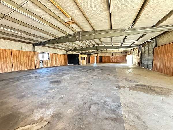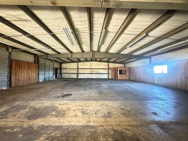 Est $1,867/mo5000 sqft under roof - solid metal structure -- insulated. Nearly 3000 sqft of exterior slab area on 1.83 acre tract. 3 10ft roll-up doors. 3 walk through doors. est 11ft clearance to the beams. est 12-13ft clearance between beams. 1 private office area. 2 - 1/2 baths. Visible from Hwy 36 just south of Brenham.