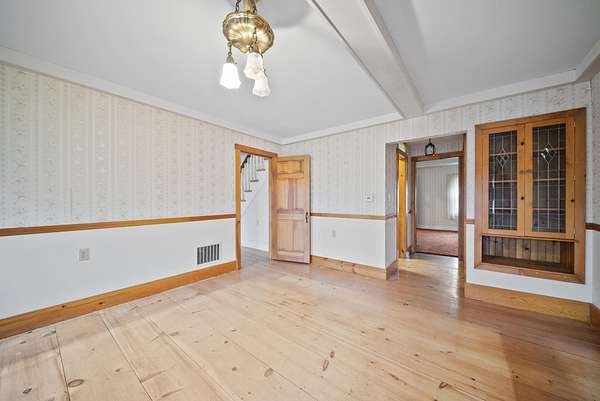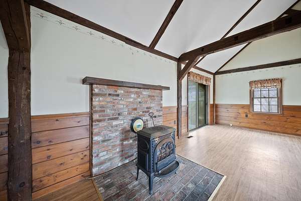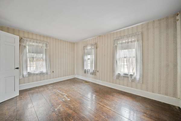 Steeped in history and rich with opportunity, this circa-1800 New England farmhouse is set on more than 11 acres of scenic land. Approximately 9 acres are protected by a permanent conservation easement, offering a stunning landscape of mature trees, rolling meadows, and preserved greenspace that safeguards the property’s natural habitat and beauty. The remaining approximate 2 acres encompass the original homestead, once adorned with flourishing vegetable and flower gardens and a pasture for horses. The home offers four bedrooms, including two on the main level and two upstairs, and features a hidden rear staircase that adds to its historic character. Interior spaces include a traditional parlor, formal dining room, and a kitchen featuring an antique wood-fired stove, evoking the warmth and authenticity of early New England living. The residence is in need of updating, presenting an opportunity for restoration and personal style to be created. Original details remain throughout, including wide pine floors in select rooms, built-in cabinetry, exposed wooden beams and a spacious family room that was once the property’s carriage house. A standout feature of the property is the impressive two-story horse barn, believed to retain many—if not all—of its original hand-hewn timbers, offering exceptional historical integrity and versatility. This unique property is ideal for the visionary seeking the spirit and charm of a classic New England farmhouse—one who values land conservation, gardens, horses, and the thoughtful preservation of a truly timeless setting. Bring your ideas, love of historic New England charm and recreate a beautiful homestead for yourself. Property is being sold as-is. Offer Deadline is Sun 3/29 5PM