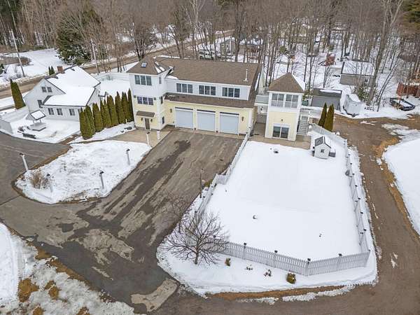 Rare. Rare. Rare. Luxury residence with exceptional, custom craftsmanship. In-ground, salt water pool. Unique to Newton is secondary, guest home already on the property. Nearly 24 acres of subdividable land, access on two roads with conceptual drawing of 8+ sprawling lots for executive-level custom-builds. This opportunity is ideal for a developer or a distinguished owner, looking for an expansive, private lot in a quintessential New Hampshire town. Close to the seacoast, minutes from Massachusetts. The primary home has three 12' garage bays, with one car lift. A fourth, 14' bay door is large enough to fit industrial tractor. The free-standing Tourette offers a pool house with full kitchen and laundry on the ground level, outdoor shower, storage and stair case to a 4-season room. The view from the third level has 360* views of the land and is kept toasty with a wood burning stove to watch the snow fly. The main house begins with a mudroom on ground level, followed by a half bath with laundry, and two more sitting rooms that are well suited for a home office, den, or library. The living space is found on the upper level where you'll enjoy the spacious living room, panoramic windows, custom kitchen with Wolfe Range, three bedrooms and full bath. The primary suite is cozy, yet notable with bright windows, tailored drapes, walk-in closet and en-suite 3/4 bath. You can't look anywhere without noticing caliber of finishes and noteworthy attention to detail. The consideration given to quality at construction phase cannot be overlooked with a steel beam structure, Brazilian cherry floors, Marvin and Jeld-wen windows, powder coated aluminum rails, variable-drive well pump, radiant heated tile floors, Hydro-air Heating system, 2 Buderus boilers fired by oil and propane, 2 oversized AC units, new septic system 2022, 2 hot water heaters, 3/4" water line and 400 AMP service to the property. Truly an exceptional and unique offering. Serious Inquiries Only.