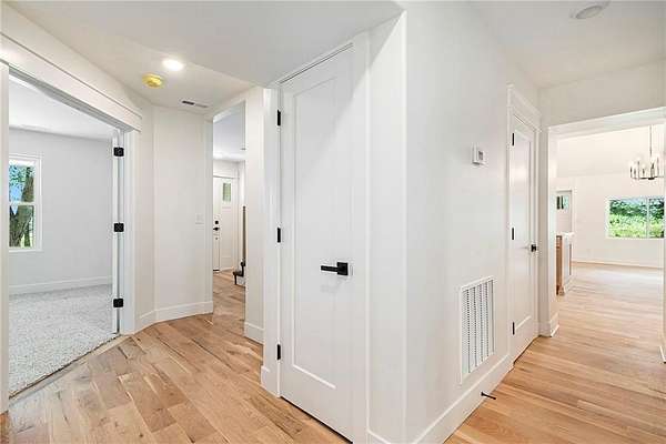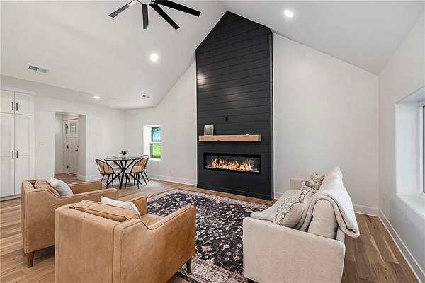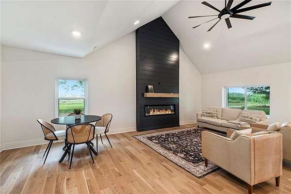 Completely renovated two-story modern farmhouse nestled on 5 beautiful, private acres. This 4-bedroom, 3.5-bath home offers the perfect balance of style, comfort, and space. The open-concept layout features vaulted ceilings, a striking black shiplap fireplace, and large windows that flood the home with natural light. The kitchen is a showstopper with quartz countertops, custom cabinetry, an oversized island, and stainless steel appliances-ideal for entertaining or everyday living. The main-level primary suite provides convenience and privacy, while three additional bedrooms and two full baths upstairs offer room to grow. Every inch of this home has been thoughtfully updated, including new flooring, windows, HVAC, roof, and more. Outside, enjoy the peace and beauty of mature trees, open green space, and room to expand. Located on a quiet country road with easy access to nearby towns and highways, this home offers modern living in a tranquil rural setting.