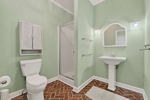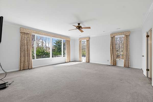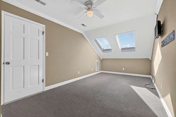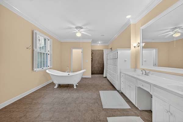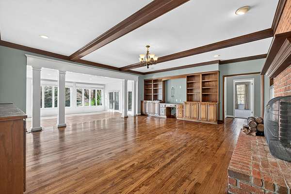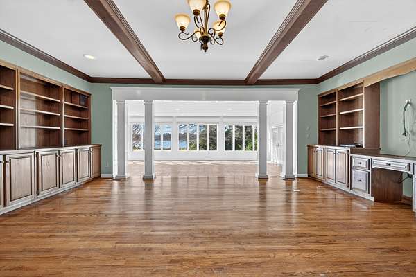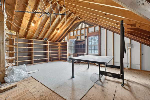 Inside, you'll find a warm and inviting den with a wood-burning fireplace, a beautiful sunroom with panoramic views of the lake, and a large dining room ideal for hosting. The primary suite includes three walk-in closets, a clawfoot tub, and a walk-in shower. Additional interior spaces include a game room, brick floors, a walk-in pantry, a huge laundry room, a sound system, and abundant storage throughout. The home also includes two walk-out attics, providing excellent additional storage and easy access.