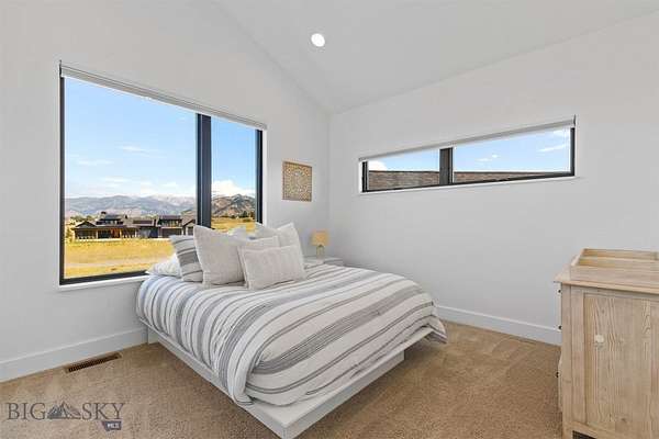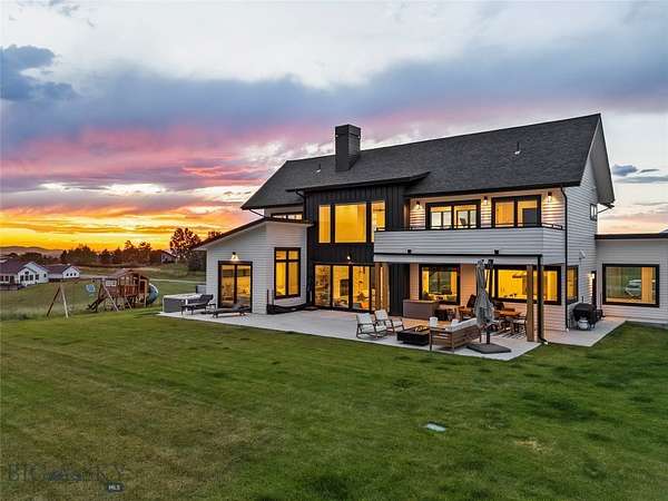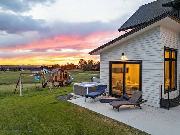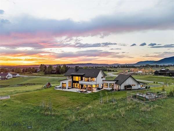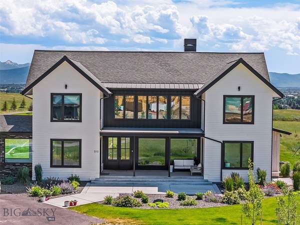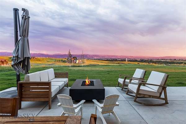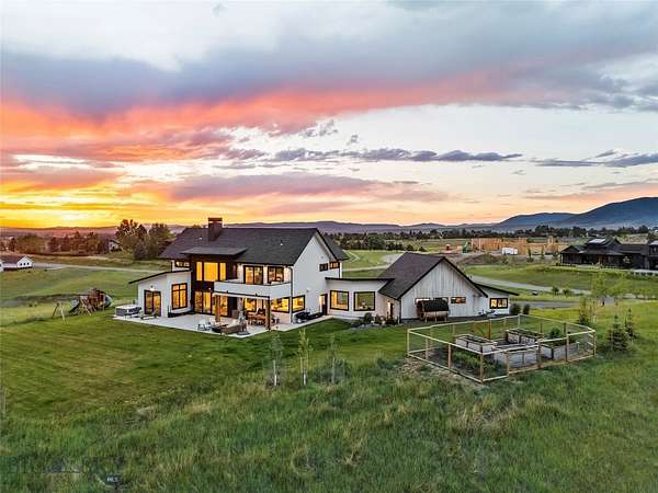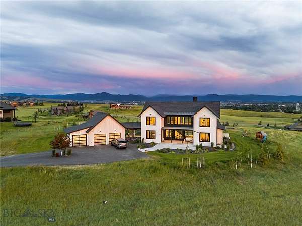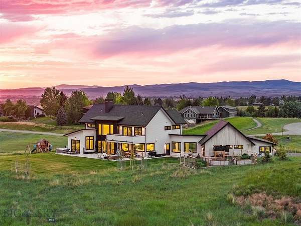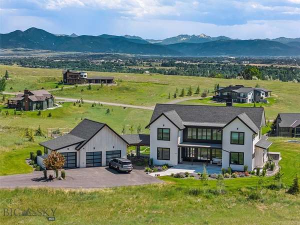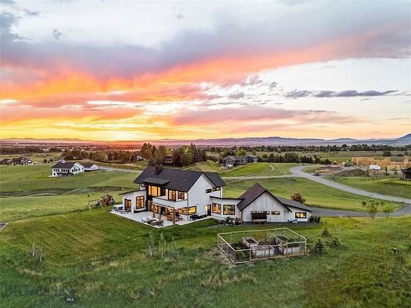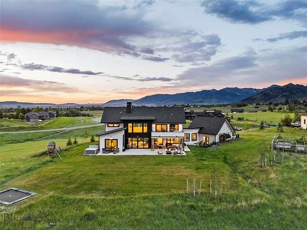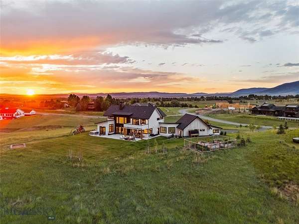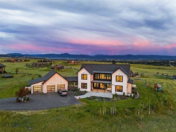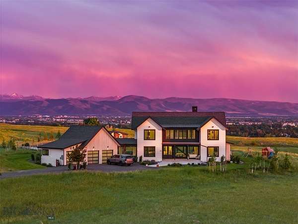 Perched atop the premier lot in Springhill Reserve, this stunning custom home captures some of the most breathtaking views in all of Bozeman. Set on 1.51 acres, the 4-bedroom, 3.5-bath, 3,577 sq ft residence was thoughtfully designed to blend luxury, functionality, and natural beauty. As you arrive via the tree-lined driveway, the panoramic views immediately impress. Inside, a chef's dream kitchen awaits, featuring high-end Thermador appliances, including a built-in 36" refrigerator and 18" freezer, dual dishwashers, a built-in coffee station, oven, speed oven, and a 36" range. A custom dumbwaiter makes transporting items to the spacious upstairs living area effortless, where a built-in bar and expansive family room offer the perfect setting for entertaining. Wine lovers will appreciate the striking 150+ bottle wine rack-both a storage solution and a conversation piece. Throughout the home, 8-foot doors and high-end finishes reflect careful attention to detail. The lower-level living space boasts vaulted ceilings and a wood-burning fireplace with a gas-assist start, creating a warm and inviting atmosphere. Step through oversized glass doors onto the expansive south-facing patio, complete with a gas fireplace and sweeping views of the Gallatin Valley. The front office enjoys uninterrupted views of the Bridger Mountains, ideal for a serene work-from-home setup or a private fitness space. Each bedroom features custom closets, blending elegance with practicality. Ideally located just 4 miles from downtown Bozeman and 5 miles from Yellowstone International Airport, this home offers both convenience and serenity. Springhill Reserve residents enjoy nearly three miles of private walking trails, a tranquil pond, and over 50 acres of open space-making this property an exceptional blend of comfort, lifestyle, and location.