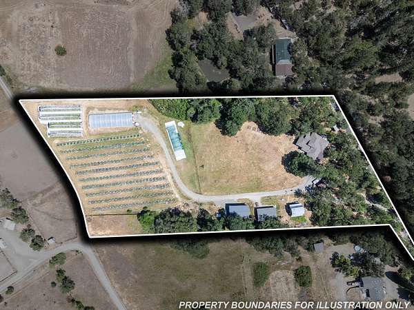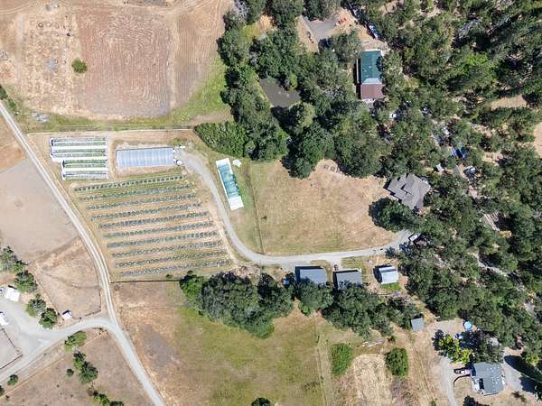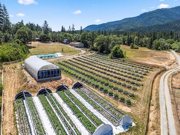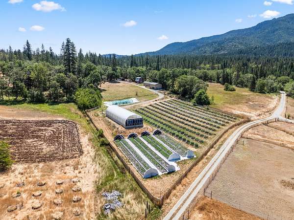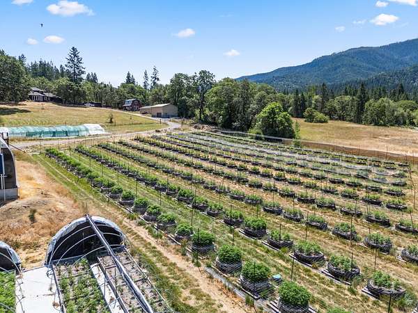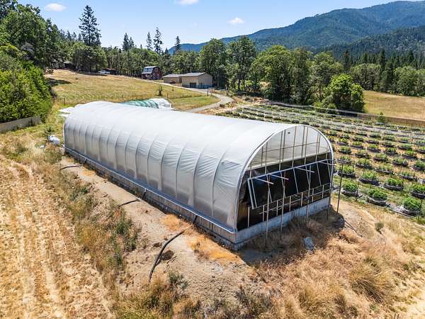 Turnkey OLCC Tier II Licensed Producer farm on 5.03 irrigated acres in the renowned Applegate Valley. Designed for efficiency and compliance, this property is ready to support large-scale cultivation or expand into diverse agricultural ventures. Infrastructure includes a 30'x96' climate-controlled greenhouse with raised beds, heating, HPS lighting, auto-curtains, and evaporative cooling; four light-dep greenhouses; a 24'x24' nursery barn; and two insulated 24'x40' shops with mini-splits and commercial dehumidifiers. Outdoor operations feature 250 irrigated 400-gallon smart pots, supported by 400-amp farm power on a dedicated meter and reliable spring irrigation. The flat, level layout and thoughtful site design make for seamless production. Situated minutes from Grants Pass and wineries in the Applegate Valley, this rare property offers a complete foundation for a thriving agricultural business in Southern Oregon.
