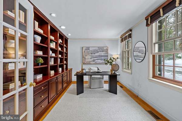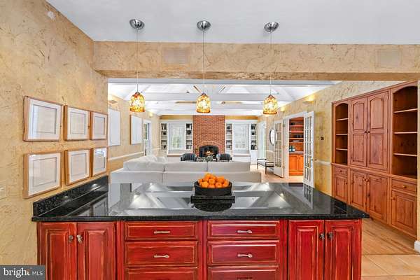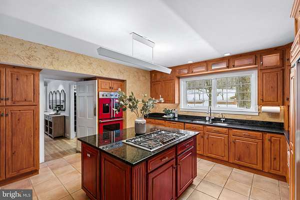 OPEN HOUSE Saturday, Feb 21 @ 12-2pm. Perched on a serene 5.6-acre hilltop with commanding views, this expansive residence offers a rare combination of authentic craftsmanship and a relaxed country lifestyle. Offering 5,800 square feet of living space, 7 bedrooms, 5 full and two half-baths, the home's substantial footprint was thoughtfully expanded by the renowned J. Paul Builders, creating a remarkable residence that prioritizes comfort and quality. From the durable slate roof to the high-end Marvin windows, the materials throughout reflect a commitment to quality and timeless design. The main level has an ideal layout for both easy daily living and for entertaining family and friends. The gourmet kitchen features granite countertops, an work island, and a suite of professional-grade appliances, including a six-burner Thermador cooktop, Viking double wall ovens, and a Sub-Zero refrigerator, as well as a large walk-in pantry. The kitchen opens to a dramatic great room with a vaulted ceiling, classic brick fireplace, and built-in bookcases. A dining room, living room, and large sunroom with a stunning view offer additional living space. The main floor is exceptionally versatile, featuring a spacious primary suite, a guest bedroom, and an additional room which could be a bedroom/home office/ playroom, alongside a dedicated art room to let your creativity shine. This wing could easily be updated to be a full private suite with a kitchenette, ideal for visitors or multi-generational living. For those who appreciate the outdoors, the sunroom, the screened-in porch with a built-in grill, and the outdoor stone patio all offer peaceful views of the lush yard. The upper level offers 4 bedrooms and 2 full bathrooms, including a convenient Jack-and-Jill configuration, all centered around an open landing. For even more utility, the lower level adds a finished area, a full bathroom, and extensive storage space. Outside, the 5.6-acre grounds provide a private sanctuary of beautiful mature trees, plants, and flowers, with ample room for a future pool or custom hardscaping. The 4-car garage is equipped with a Tesla charger. Located just minutes from busy shopping and dining options of Owings Mills and the scenic beauty of Greenspring Valley, this home offers a quiet retreat with easy access also to Stevenson, Hunt Valley, and downtown, and to 83, 795, and 695. This treasured property is ready for its next owners to enjoy and make it truly their own.