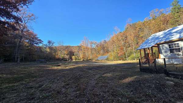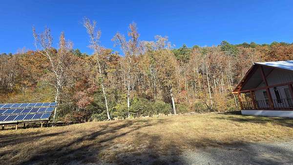 Escape to the Ozarks with this beautiful off-grid property on 34.06 acres in Shirley, AR. Surrounded by rolling hills and a year-round creek, this property offers privacy, peace, and self-sufficiency. The cabin features a spacious front porch, open living and dining area with island, cedar accents, and modern finishes throughout. Enjoy a master suite with walk-in closet, guest bedroom, and laundry room. Powered by solar panels with battery bank, creek, water holding tank, this home is built for off-grid comfort. Outside you'll find approx. 5 cleared acres, a large 3-bay carport, storage shed, and 700 ft of creek frontage. Perfect for a homestead, --just 2.5 miles from the Middle Fork of the Little Red River and 8 miles to Greers Ferry Lake! Very remote, off grid and rural. Contact an agent today for details.