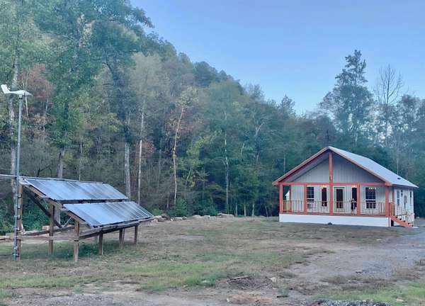 Escape to the Ozarks with this beautiful off-grid property on 34.06 acres in Shirley, AR. Surrounded by rolling hills and a year-round creek, this property offers privacy, peace, and self-sufficiency. The cabin features a spacious front porch, open living and dining area with island, cedar accents, and modern finishes throughout. Enjoy a master suite with walk-in closet, guest bedroom, and laundry room. Powered by solar panels with battery bank, creek, water holding tank, this home is built for off-grid comfort. Outside you’ll find approx. 5 cleared acres, a large 3-bay carport, storage shed, and 700 ft of creek frontage. Perfect for a homestead, —just 2.5 miles from the Middle Fork of the Little Red River and 8 miles to Greers Ferry Lake! Very remote, off grid and rural. Contact an agent today for details.