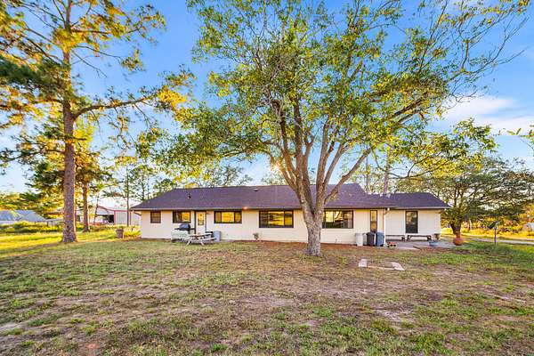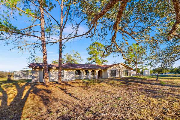 HONEY STOP THE CAR! Looking for quiet country living yet easy access to San Antonio and Floresville? Then this may be the home for you. This 1970's ranch style home sits on 4.6 acres just inside the Wilson County line and is rich with many varieties of mature trees. The front portion of the property is cleared so bring your horses and farm animals as there are no restriction or HOA. Behind the home is a 20x20 SF metal workshop with electricity and a 10x10 covered outdoor slab attached as well as a 12x24 SF storage building. There are 6 hose bibs strategically located throughout the property to support animals or a garden. The home offers an expansive living room, a formal dining room and a large bonus room similar to a California room, all with lots of natural light. The roof shingles were replaced in 2025 and new doors and fiberglass windows installed in 2018. WDI bate stations were installed in July 2025 to prevent WDI for up to a year. Make this property your own.