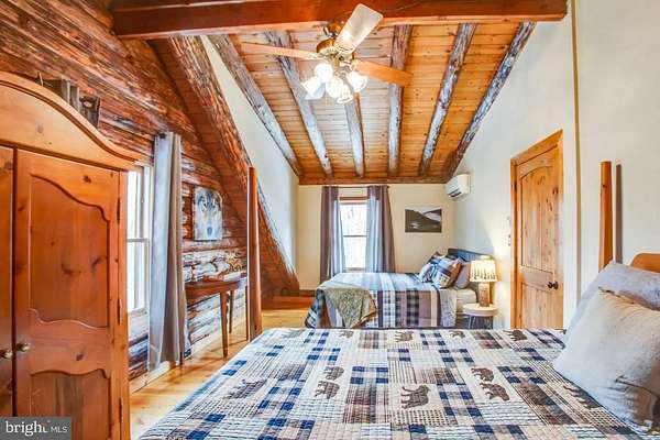 Welcome to your dream escape, a charming log cabin nestled on a sprawling 13-acre lot with direct water access perfect for kayaks or canoes. This cozy retreat offers a private drive leading up to the cabin, where you'll find a serene haven surrounded by mature trees, wildlife, and the beauty of nature at every turn. Step inside to find warm, rustic wood finishes, a cozy living area with large windows capturing natural light. Or step outside and relax on the private screened porch where you can unwind, read, or enjoy the sounds of nature, no matter the weather. Below the screened in porch, you'll find the hot tub, perfect for unwinding! With a generous stretch of land to explore and private access to the water, it's a paradise for those who love to fish, paddle, or simply sit by the shore. This property is ideal for nature enthusiasts and anyone seeking peace, privacy, and the simple pleasures of outdoor living. Make this log cabin your perfect getaway, blending rustic charm and modern comfort in an idyllic setting.