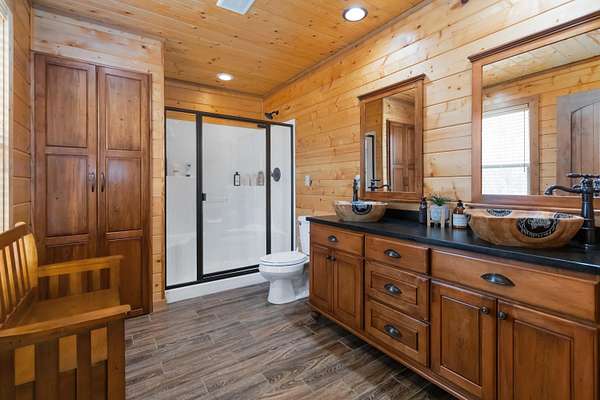 Escape to your own private paradise at 510 Meadow View Dr in Nancy, KY! Built in 2016 and offering 2 bedrooms (potential for 3-4 BR), 3 full bathrooms, and 2,844 total sq ft, this beautiful home delivers the perfect blend of comfort, functionality, and "log cabin" charm-without the log maintenance. Situated on a gorgeous 5.49-acre tract, you'll love the peaceful setting and room to roam, relax, and enjoy the outdoors while still being just minutes from Lake Cumberland-only 10 minutes to Cumberland Point Boat Ramp and 15 minutes to Lee's Ford Marina! Since purchasing, the owners have made major improvements including a finished walkout basement complete with flooring, a mini-split heating & cooling system, a finished full bath, and a cozy lounge area. The basement has been thoughtfully sectioned into two additional rooms currently used as a music recording studio-ideal for extra bedrooms, a second living area, home office, or flex space (could be converted back to a 2 car garage). You'll also appreciate the added peace of mind with a safe room featuring 10-inch poured concrete walls, built-in storage, and heating/cooling. Enjoy extra convenience with a whole-house Generac generator that powers both the home and the detached 24x26 garage (built in 2021) featuring electric, concrete floor, and a built-in workbench. Additional upgrades include improved propane setup servicing the Generac, gas fireplace and 5-burner gas stove. Ductwork and split thermostat was added for adjustable comfort for the upstairs loft. The custom kitchen is loaded with upgrades including maple cabinets, a walnut island, pull-out shelving, hidden trash storage, pot/pan hooks, and a knife drawer with block. All kitchen appliances, plus washer and dryer, remain. Even better-TVs, living room furniture, and beds stay, making this home truly move-in ready! Outside, unwind by the woodburning firepit, take advantage of the woodshed, and enjoy the privacy and space that country living provides-including your very own shooting range behind the garage. Additional features include Starlink high-speed internet (perfect for working from home) and a security system for both the home and garage. This is the kind of property you don't find every day-schedule your showing and come experience it for yourself!
