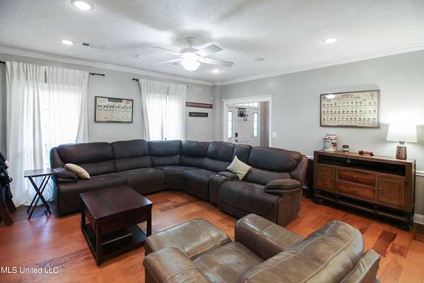 Come home to this beautiful 4 bedroom, 3.5 bath farmhouse in the highly sought-after Lake Ridge subdivision. Sitting on roughly 2.3 acres, this property also includes a great workshop/outbuilding with tons of potential for whatever you need. The Southern-style front porch is made for coffee mornings and relaxing while you look out over the neighborhood lake. Inside, you'll find thoughtful touches throughout - from the farmhouse sink to the brick paver floors. The master suite is downstairs with a spacious bath and separate shower. Guests will also appreciate the half bath off the kitchen. The kitchen opens up to a large dining area and living room, giving you plenty of room to entertain. Upstairs above the kitchen and master suite are two oversized bedrooms with large closets and a shared full bath. On the other side of the house is a huge bonus room downstairs with brick paver flooring - perfect for a game room, office, workout space... you name it. Above the bonus room is another big bedroom with its own full bath. There's truly so much to love about this property. Schedule your showing today!